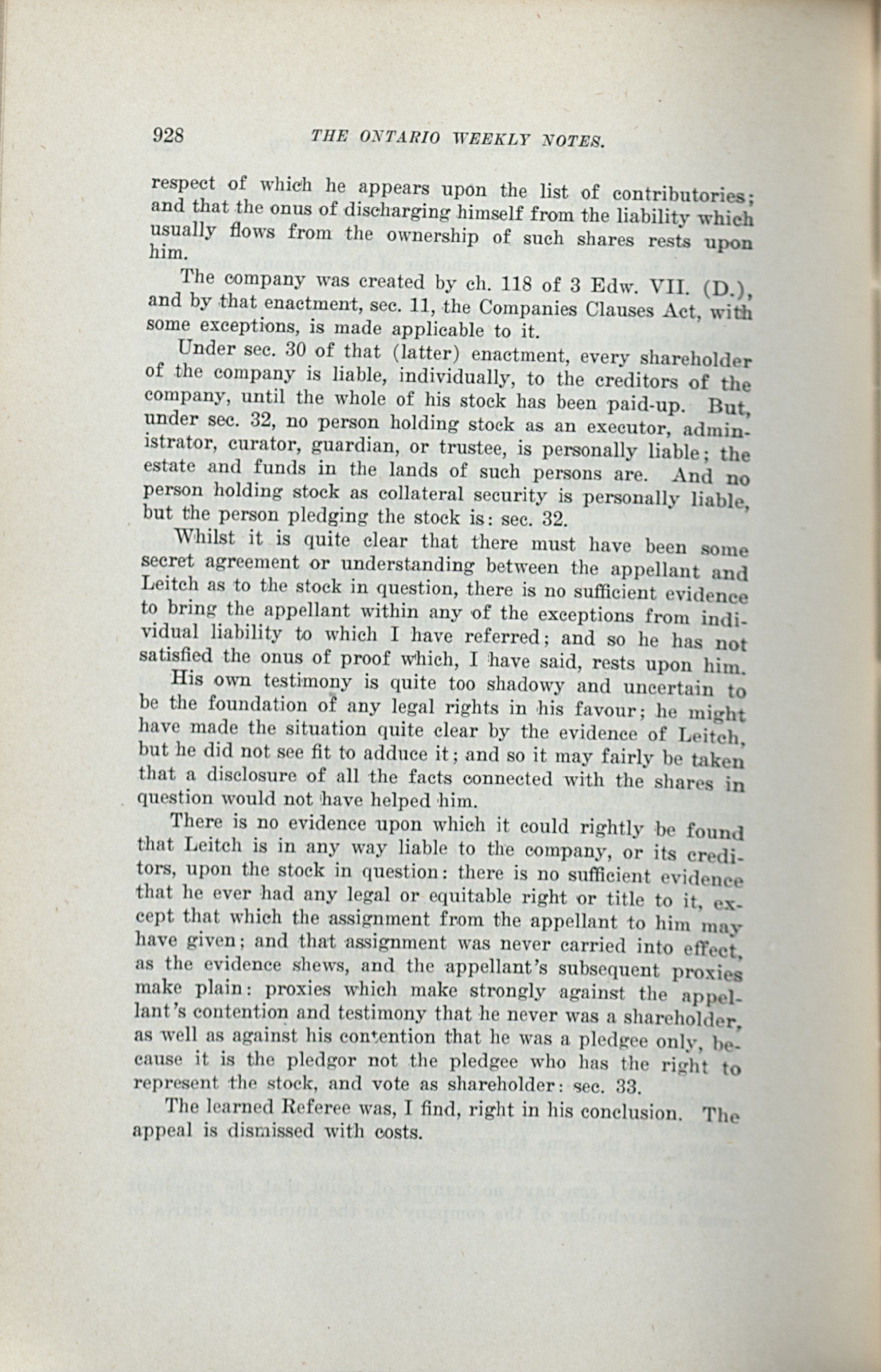 - The Ontario Weekly Notes. : Vol. IV. No. 27 (March 21, 1913.)