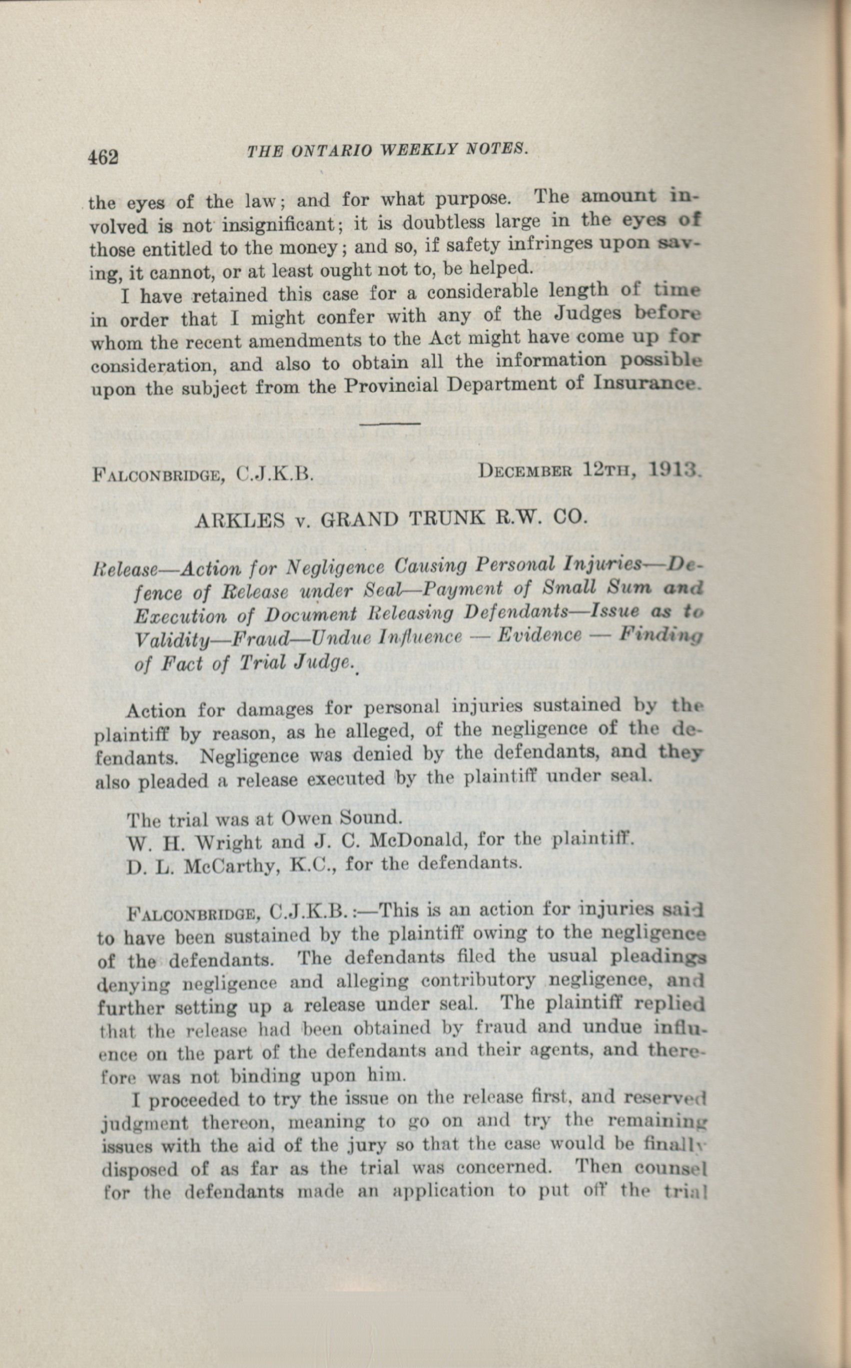 The Ontario Weekly Notes. : Vol. V. No. 13 (December 19, 1913.)