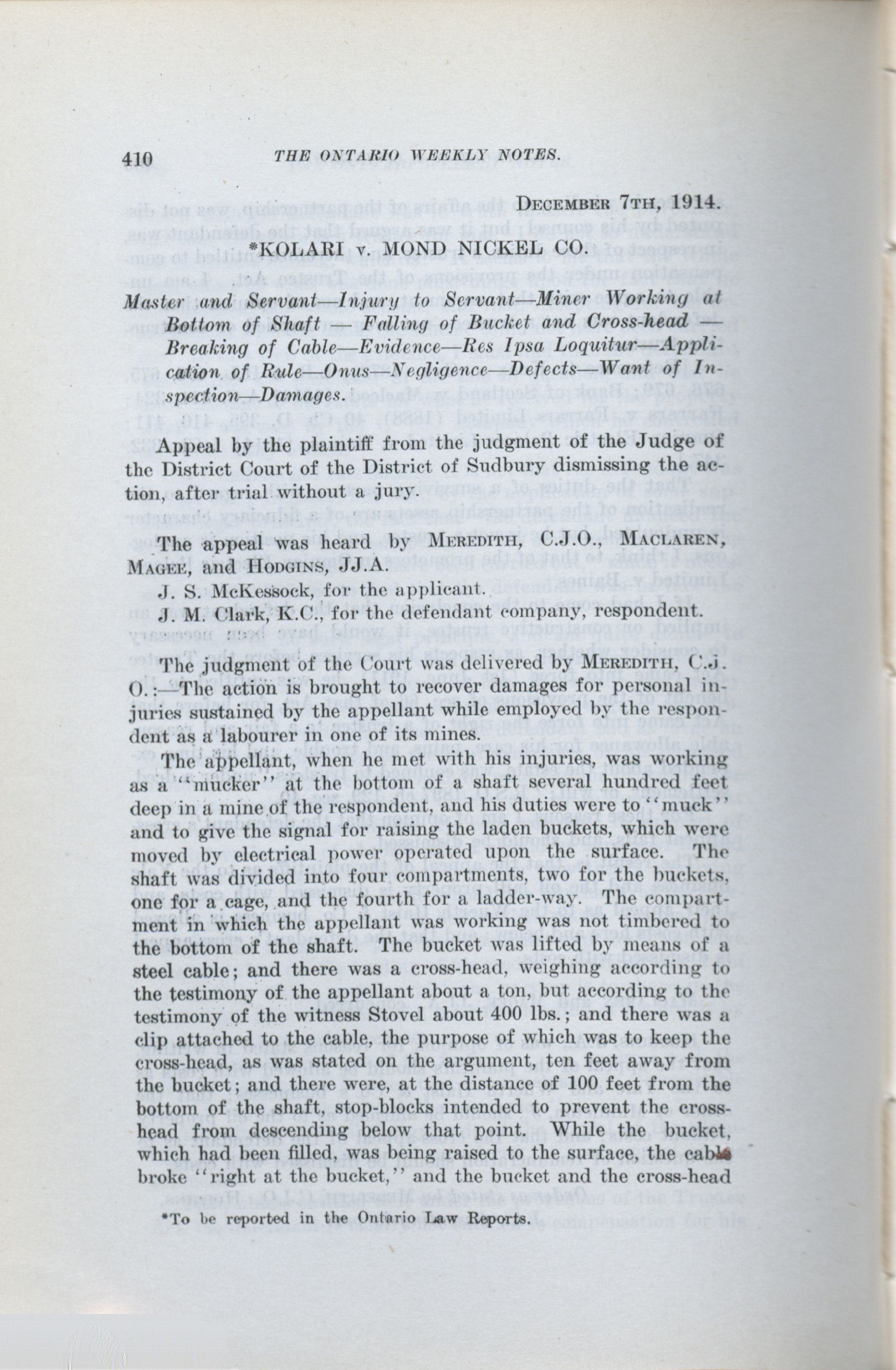 - The Ontario Weekly Notes. : Vol. VII. No. 15 (December 18, 1914.)