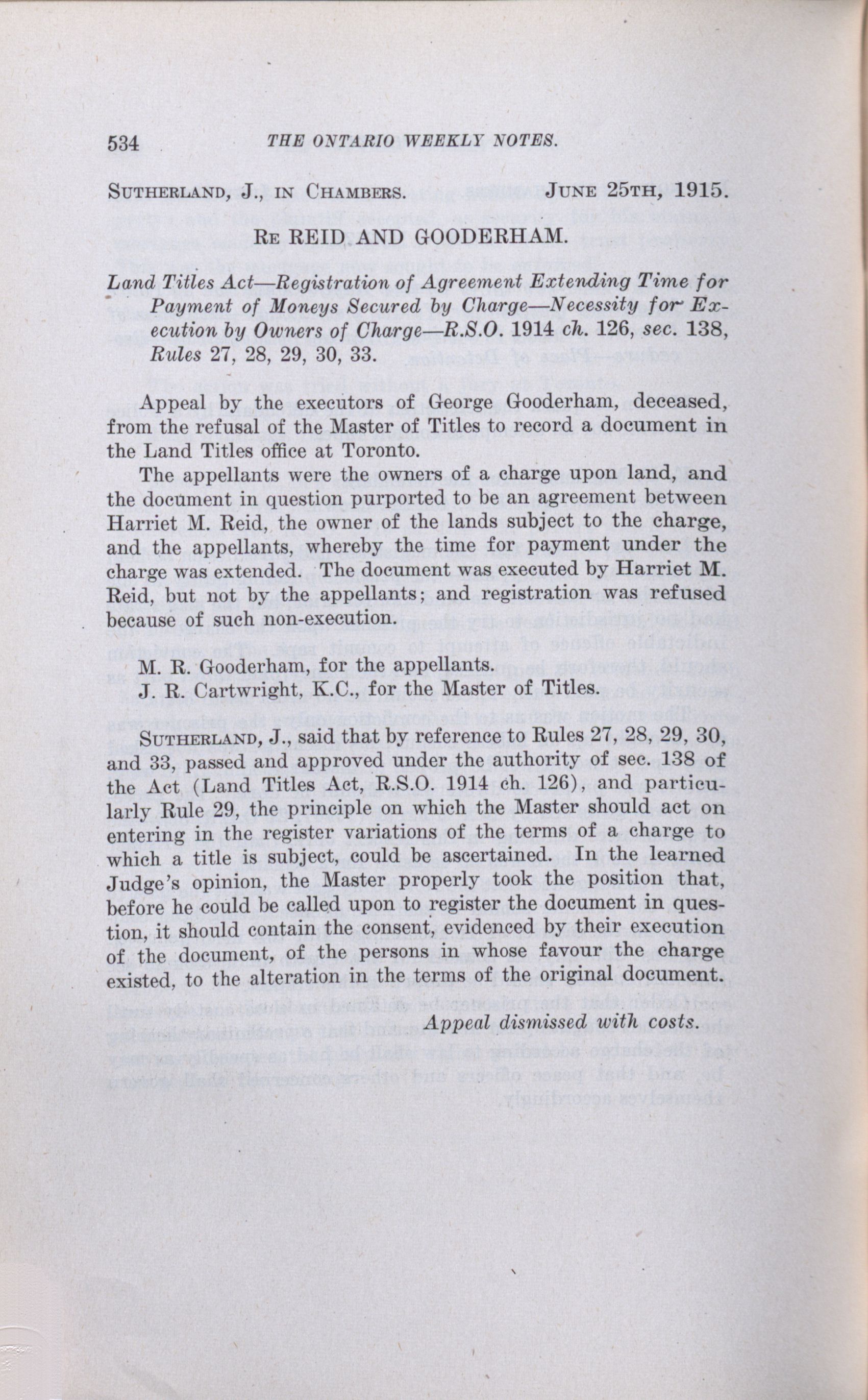The Ontario Weekly Notes. : Vol. VIII. No. 16 (July 2, 1915.)