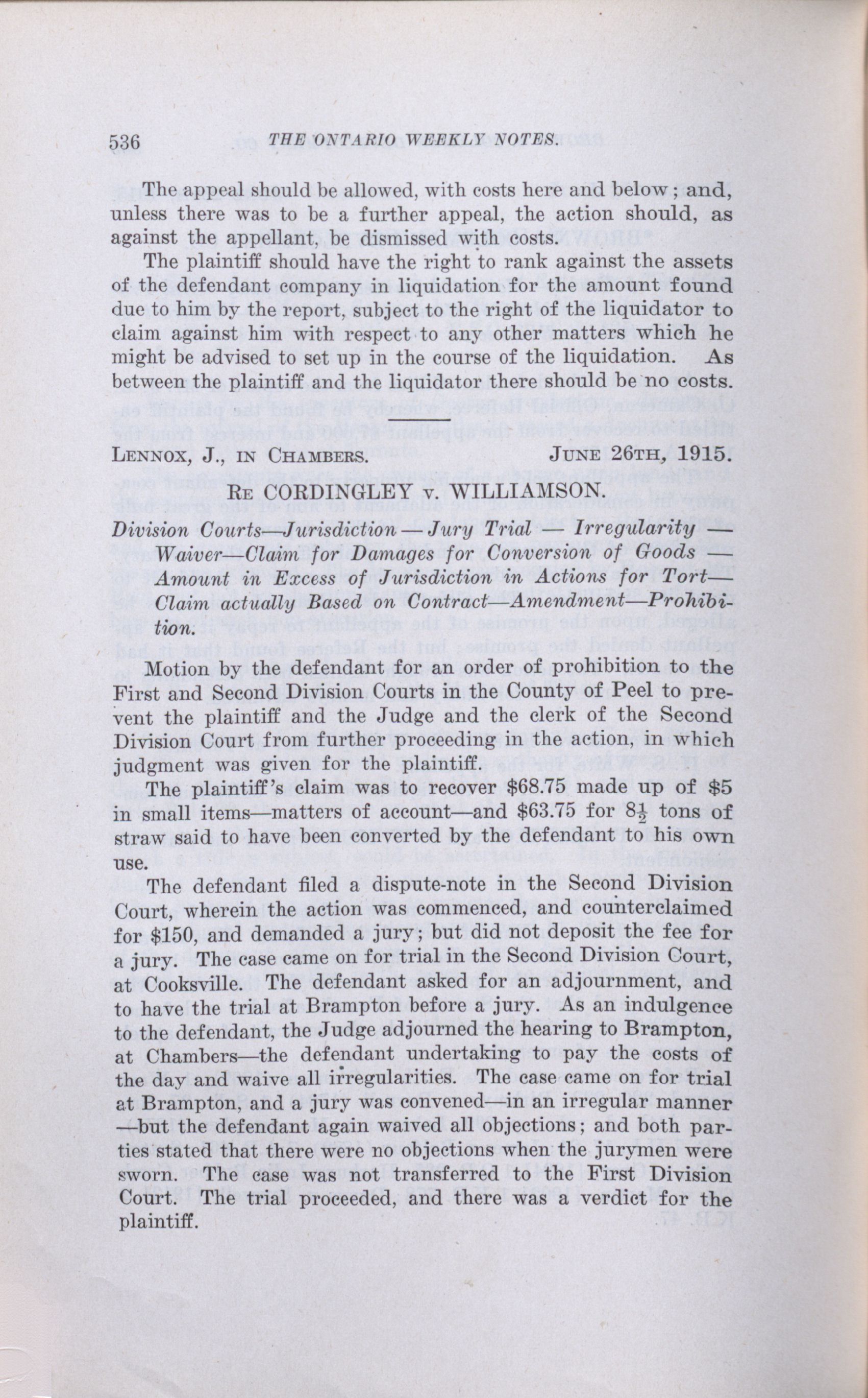 The Ontario Weekly Notes. : Vol. VIII. No. 16 (July 2, 1915.)