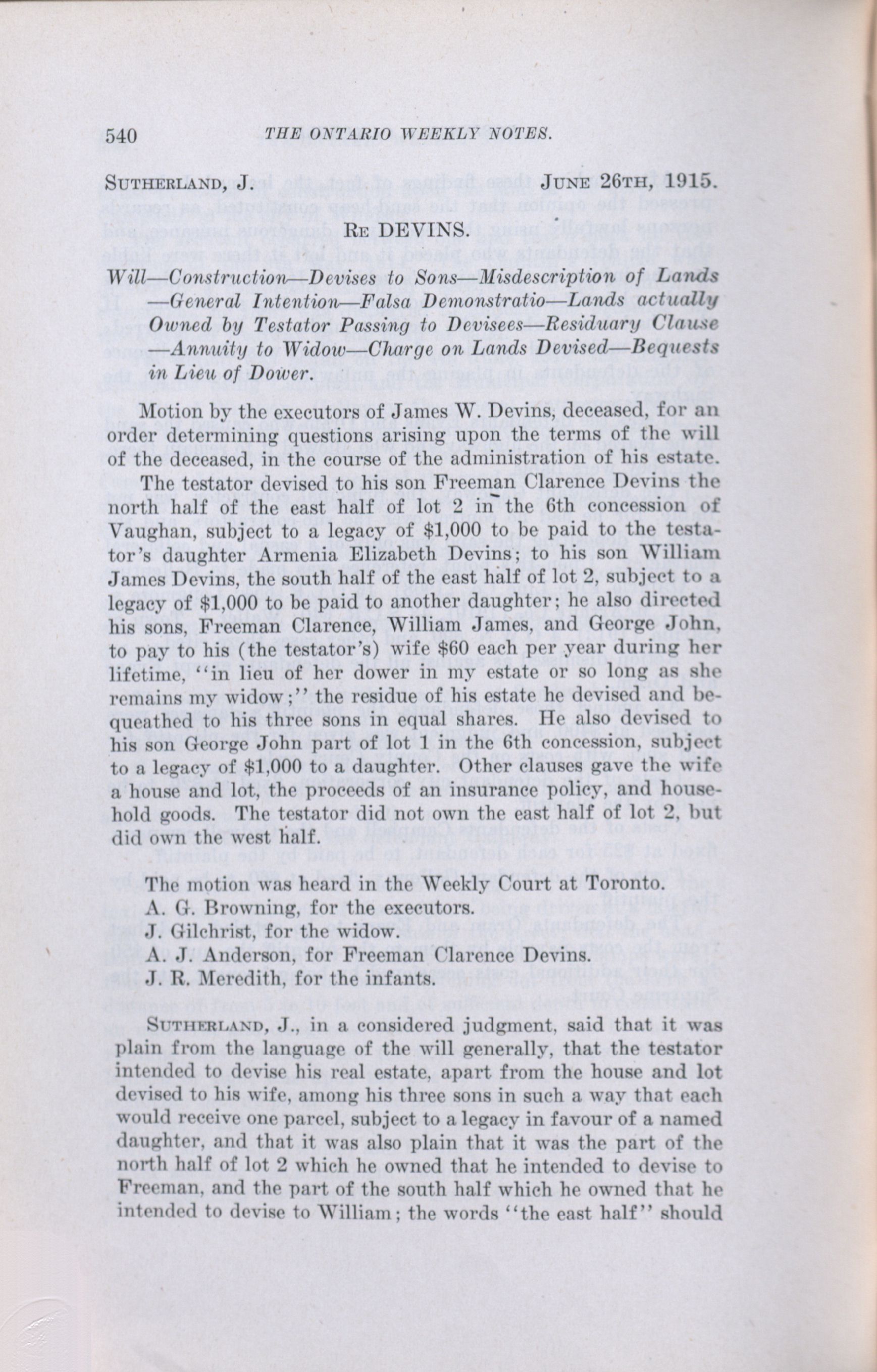 - The Ontario Weekly Notes. : Vol. VIII. No. 16 (July 2, 1915.)