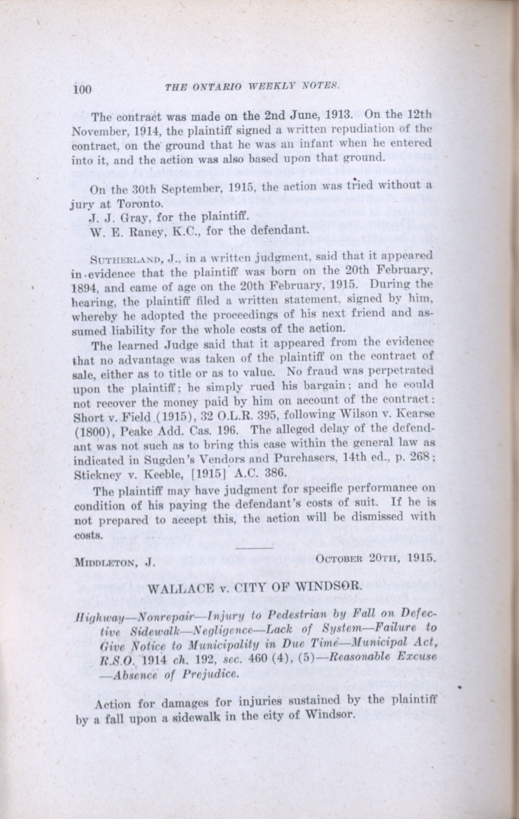 The Ontario Weekly Notes. : Vol. IX. No. 8 (October 29, 1915.)