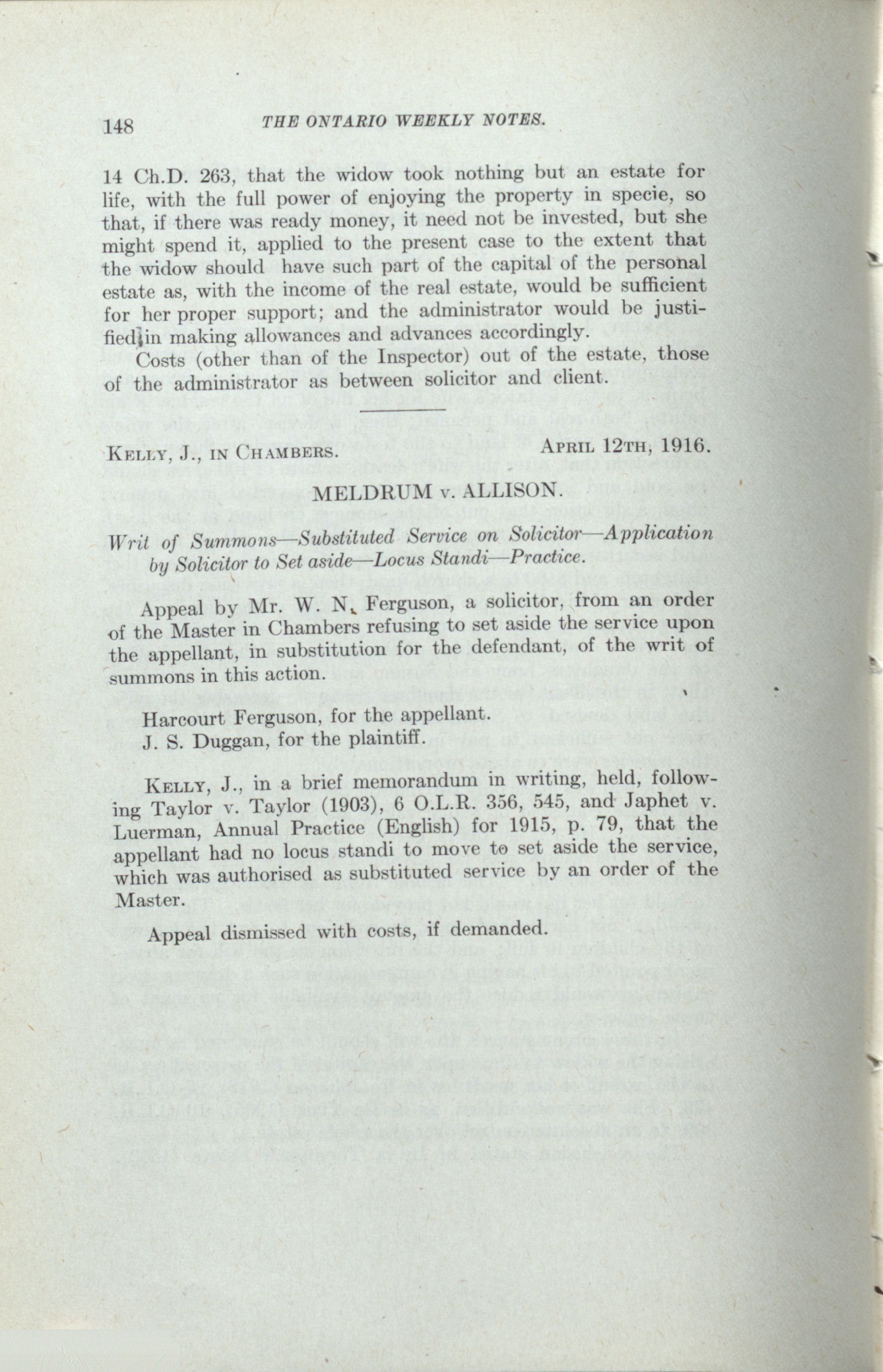 - The Ontario Weekly Notes. : Vol. X. No. 6 (April 22, 1916.)