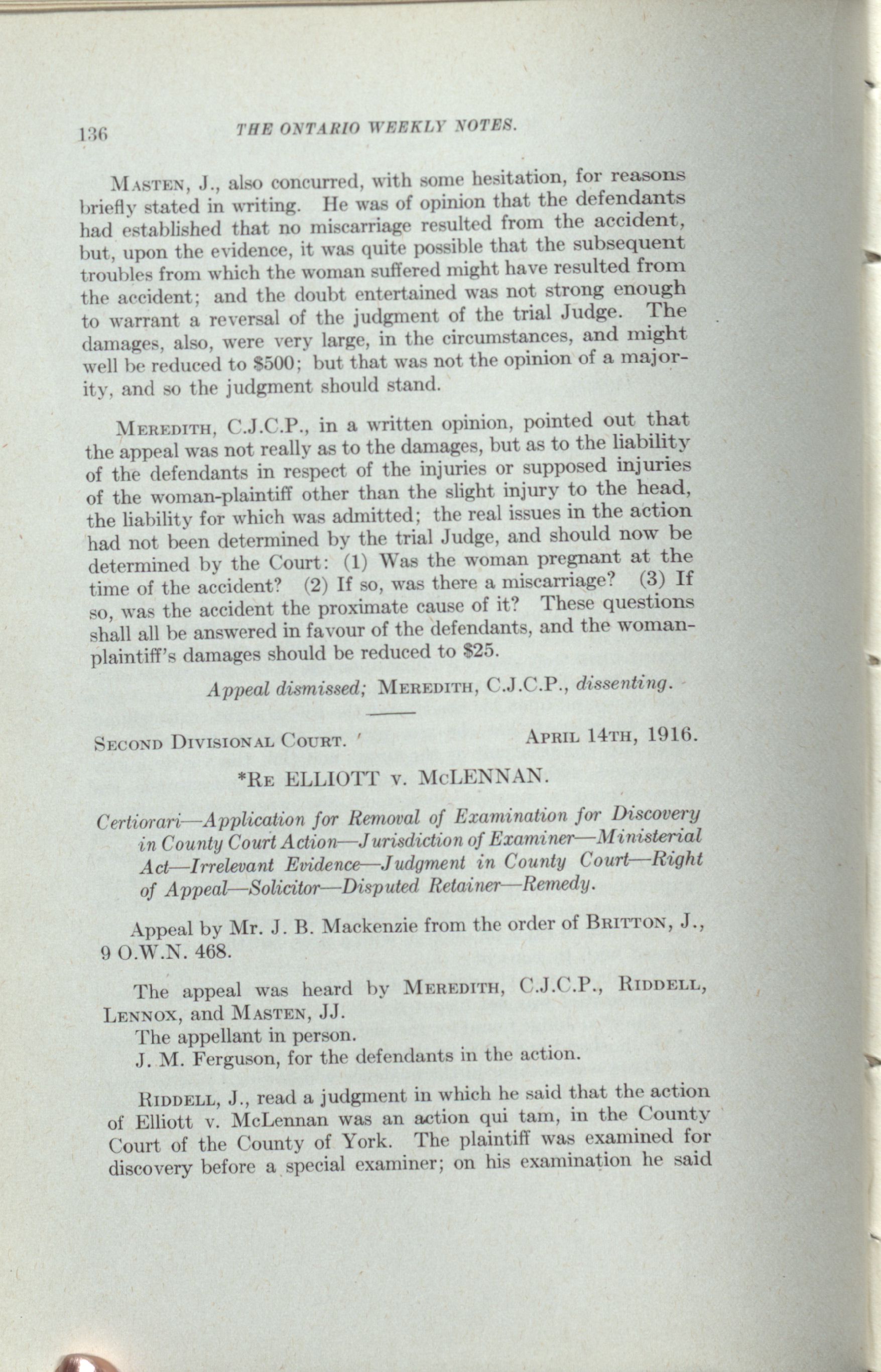 - The Ontario Weekly Notes. : Vol. X. No. 6 (April 22, 1916.)