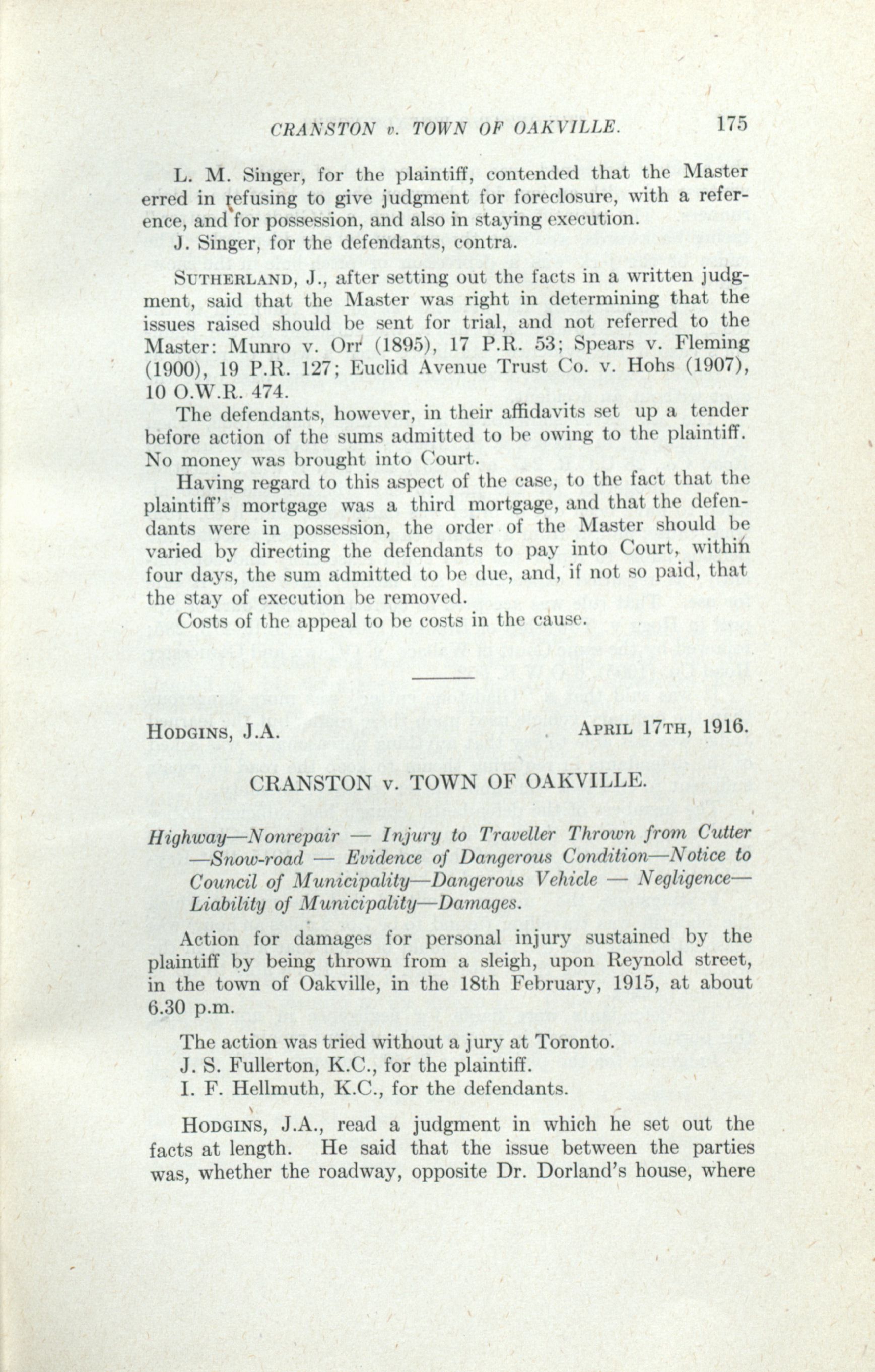 The Ontario Weekly Notes. : Vol. X. No. 7 (April 28, 1916.)