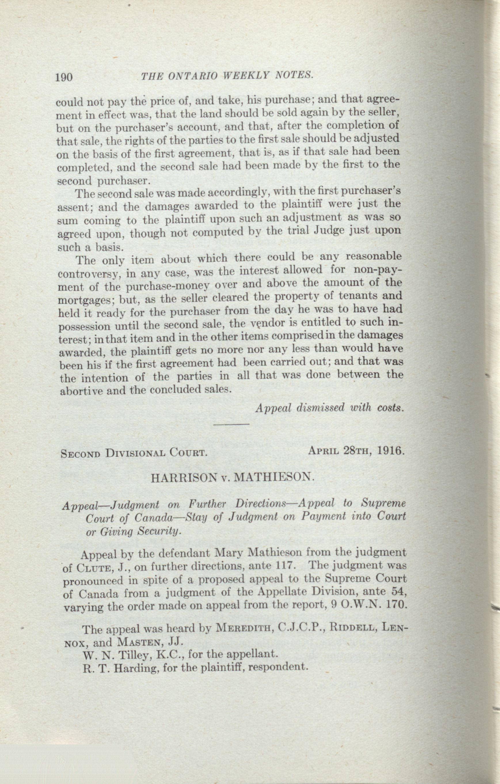 The Ontario Weekly Notes. : Vol. X. No. 8 (May 5, 1916.)