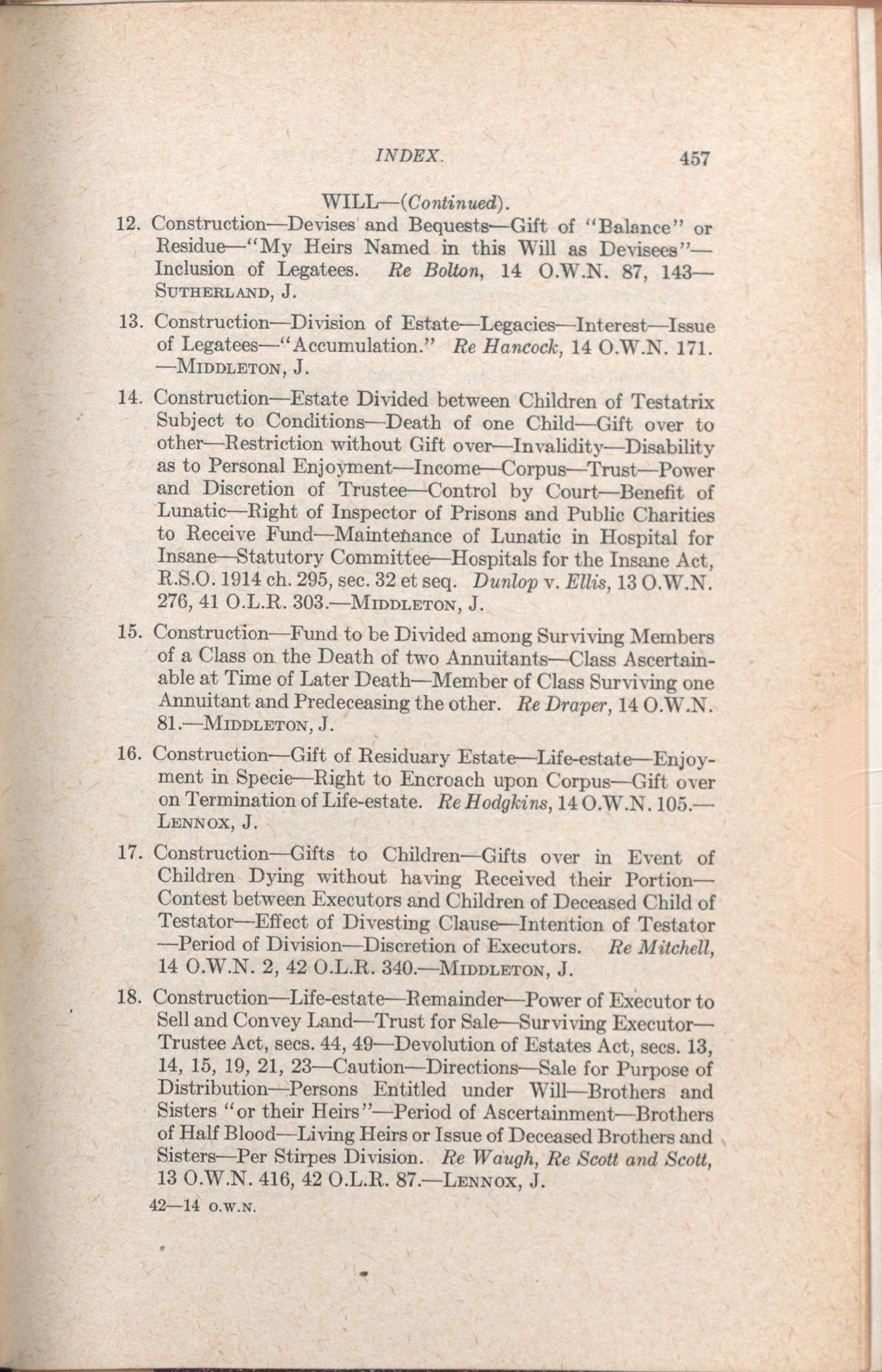 The Ontario Weekly Notes. : Vol. XIV. No. 21 (August 9, 1918.)