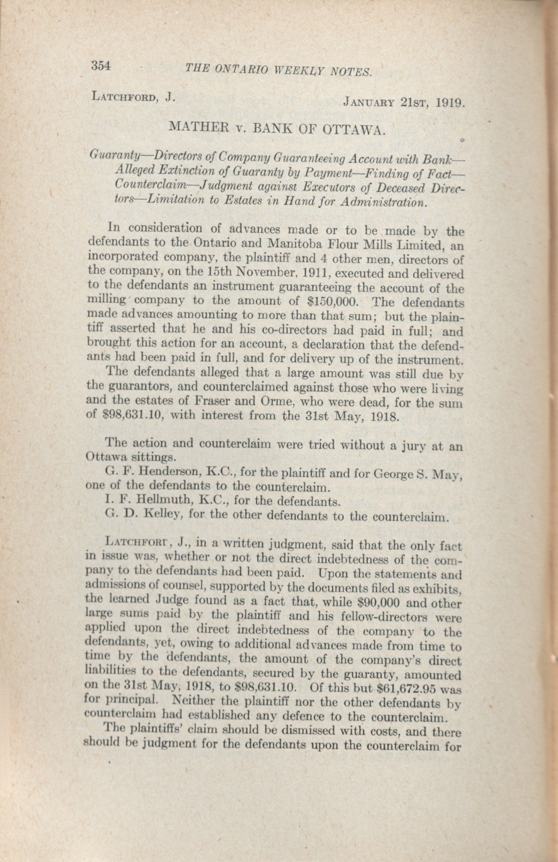 - The Ontario Weekly Notes. : Vol. XV. No. 21 (January 31, 1919.)