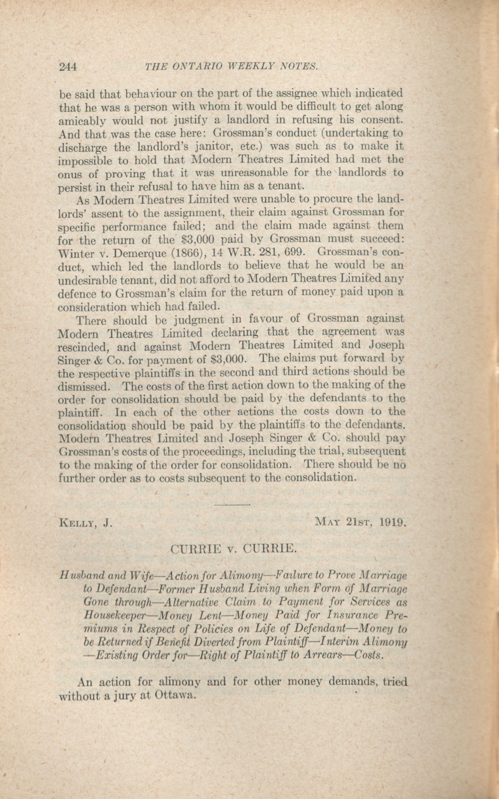 The Ontario Weekly Notes. : Vol. XVI. No. 11 (May 30, 1919)