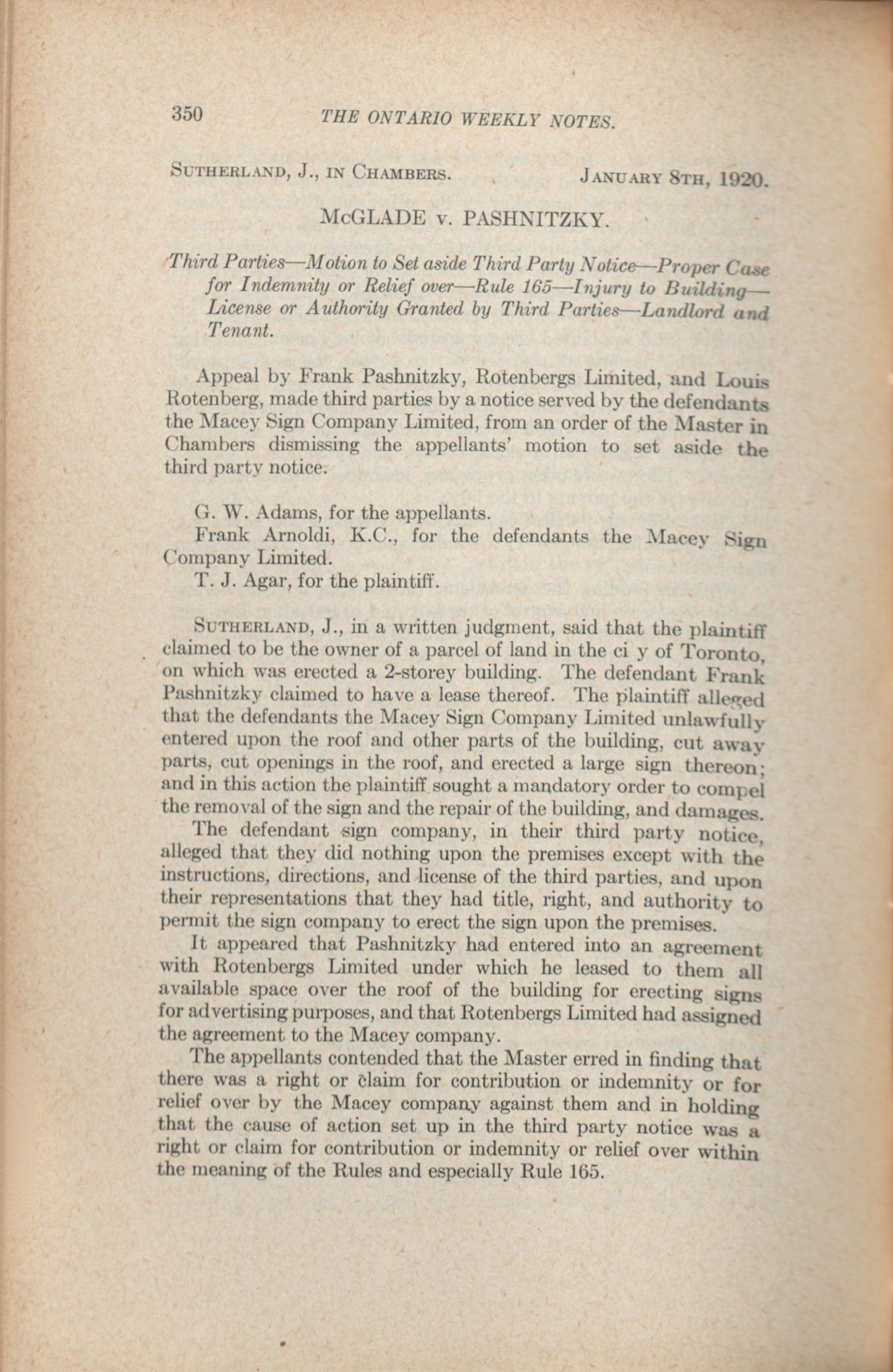 The Ontario Weekly Notes. : Vol. XVII. No. 17 (January 16, 1920.)