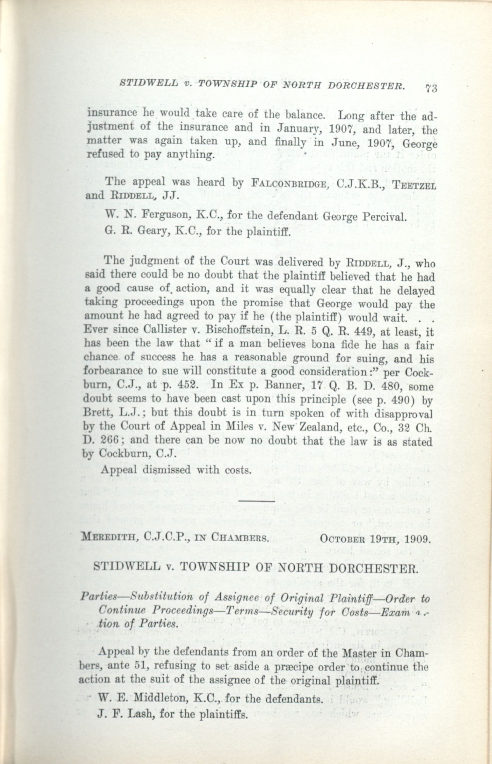 - The Ontario Weekly Notes. : Vol. I. No. 5. (October 27, 1909.)
