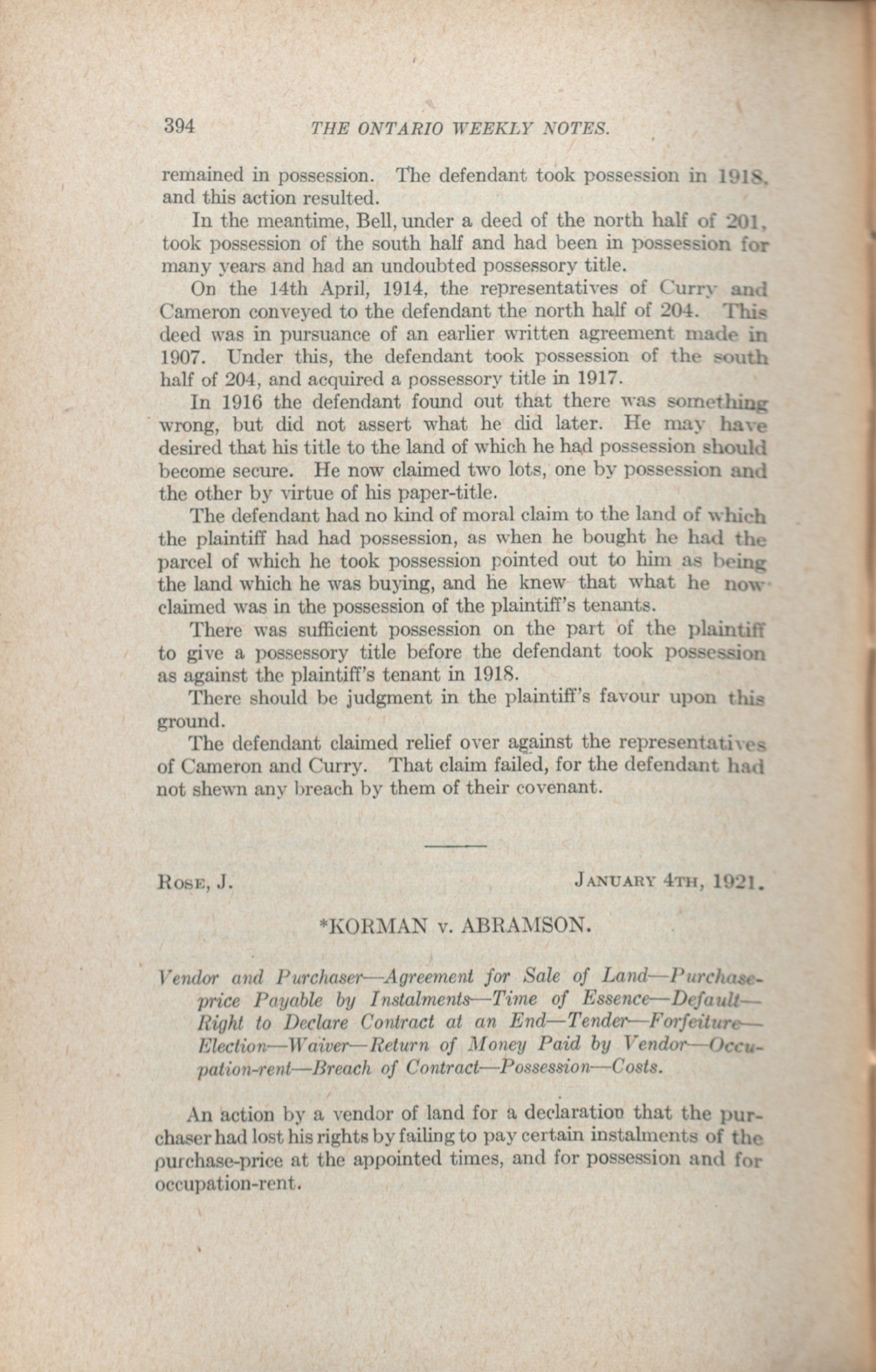 - The Ontario Weekly Notes. : Vol. XIX. No. 18 (January 14, 1921.)