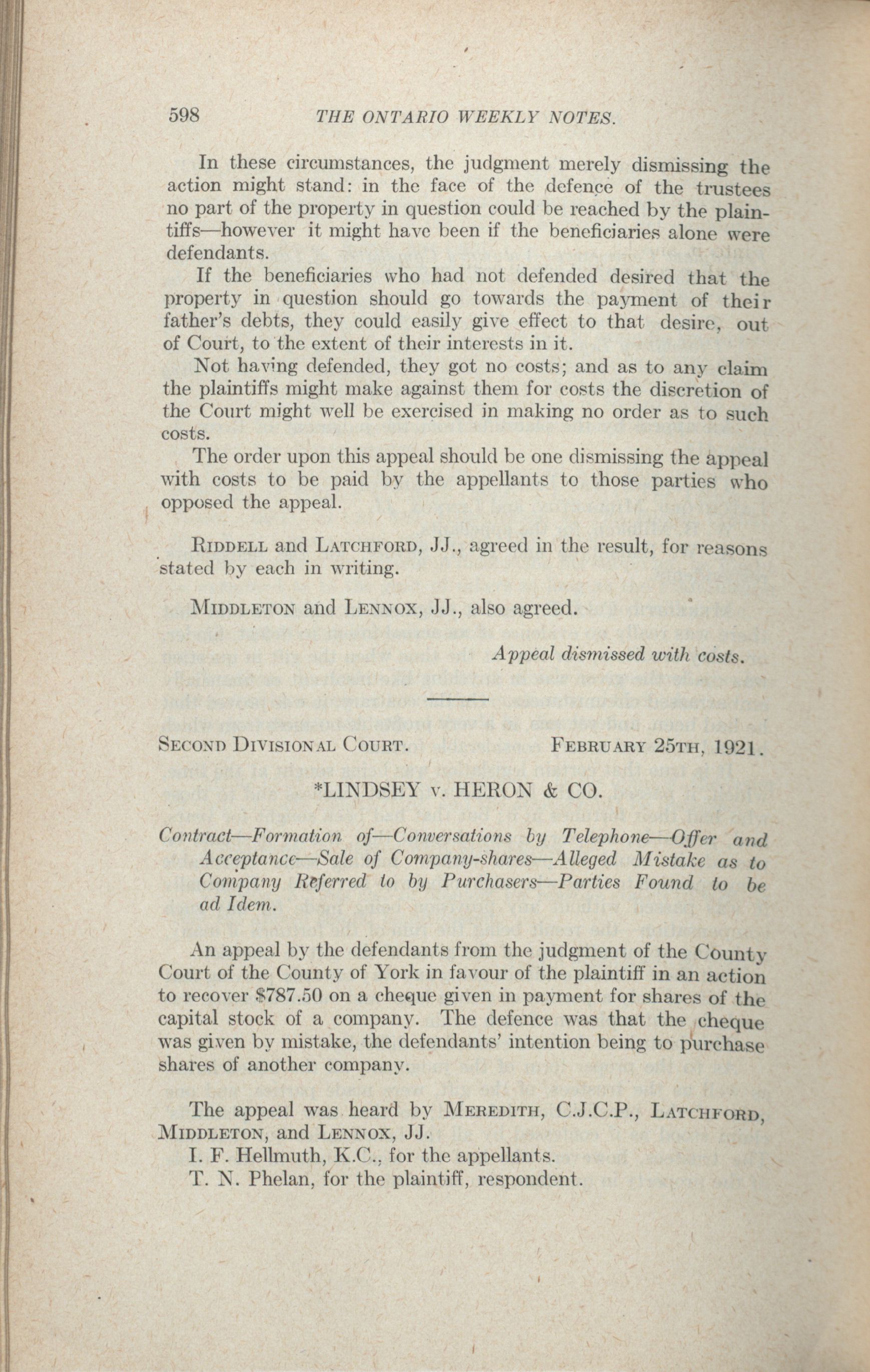 The Ontario Weekly Notes. : Vol. XIX. No. 25 (March 4, 1921.)