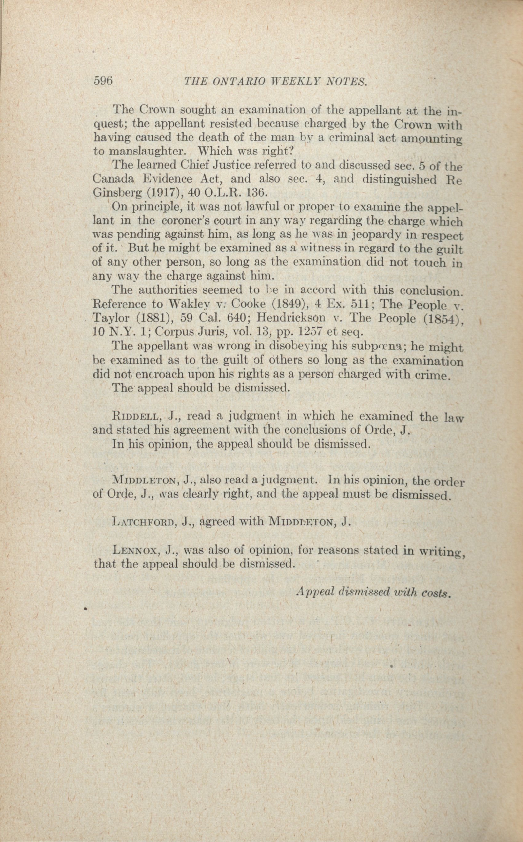 The Ontario Weekly Notes. : Vol. XIX. No. 25 (March 4, 1921.)
