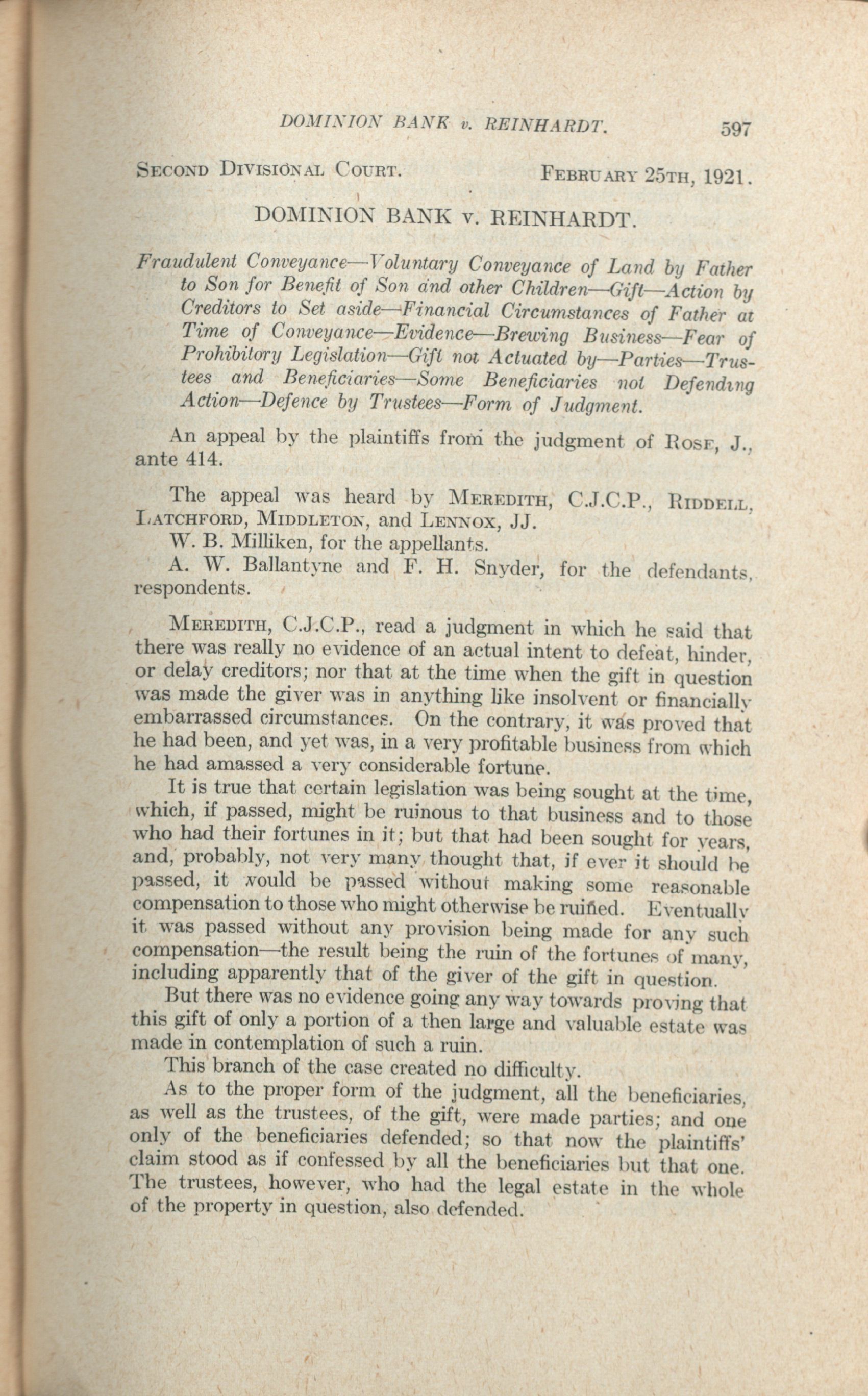 The Ontario Weekly Notes. : Vol. XIX. No. 25 (March 4, 1921.)