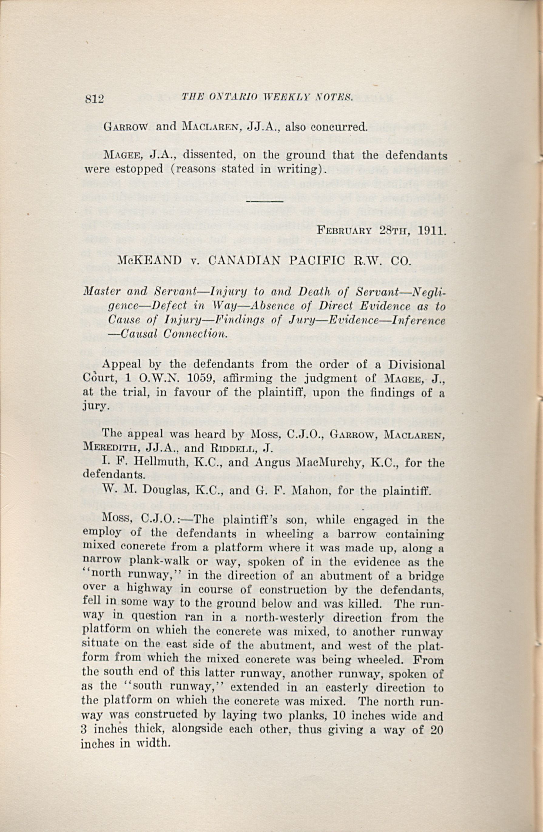 The Ontario Weekly Notes. : Vol. II. No. 24. (March 8, 1911.)