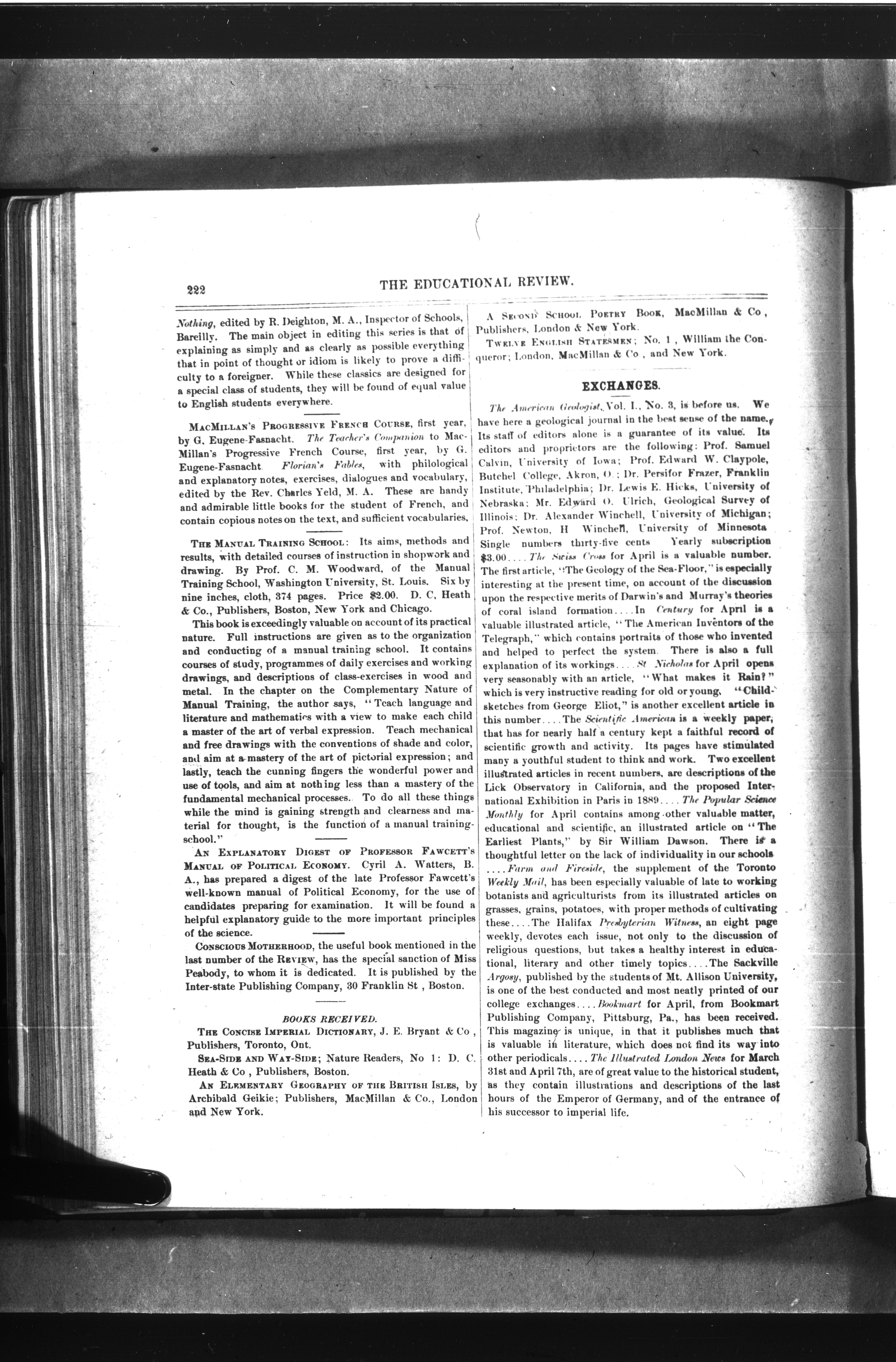 Educational review. : Vol. I. No. 11. (April, 1888.)