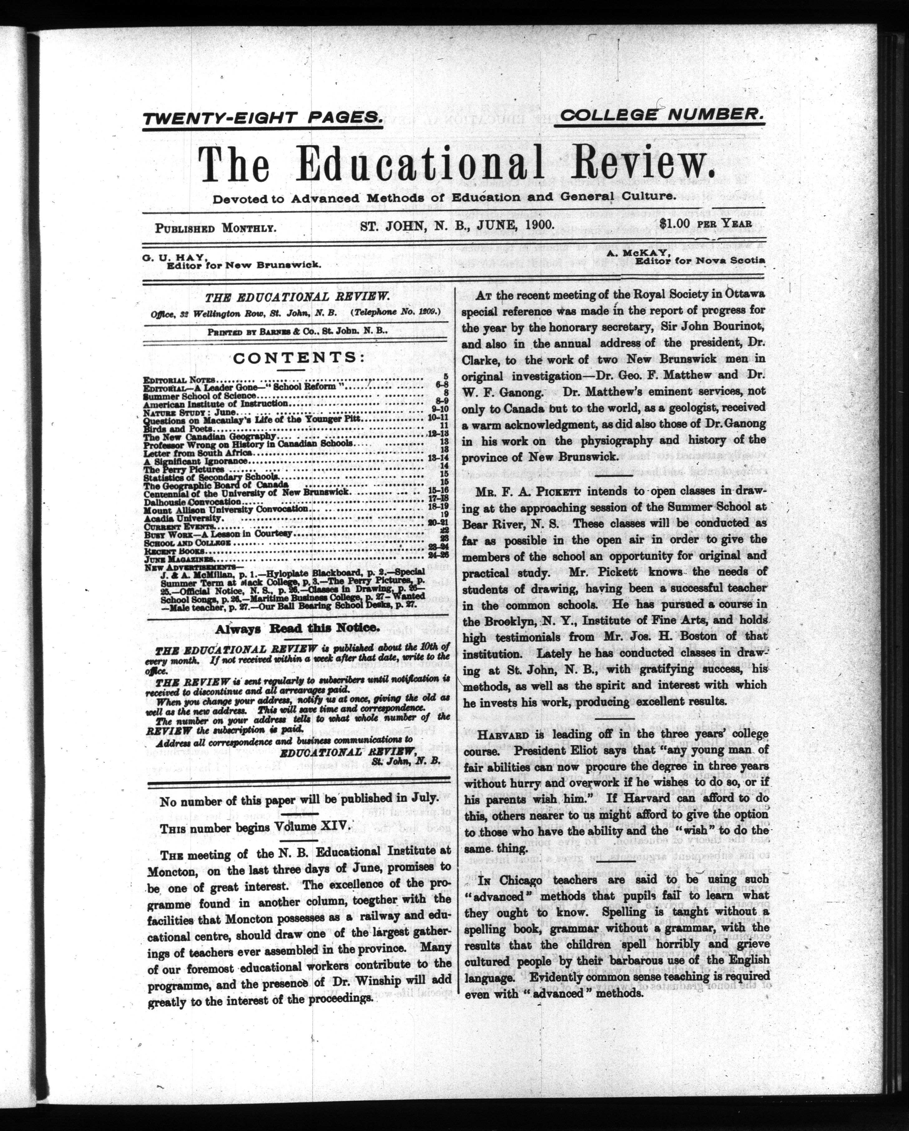 Educational review. : Vol. XIV. No. 1. (June, 1900.)