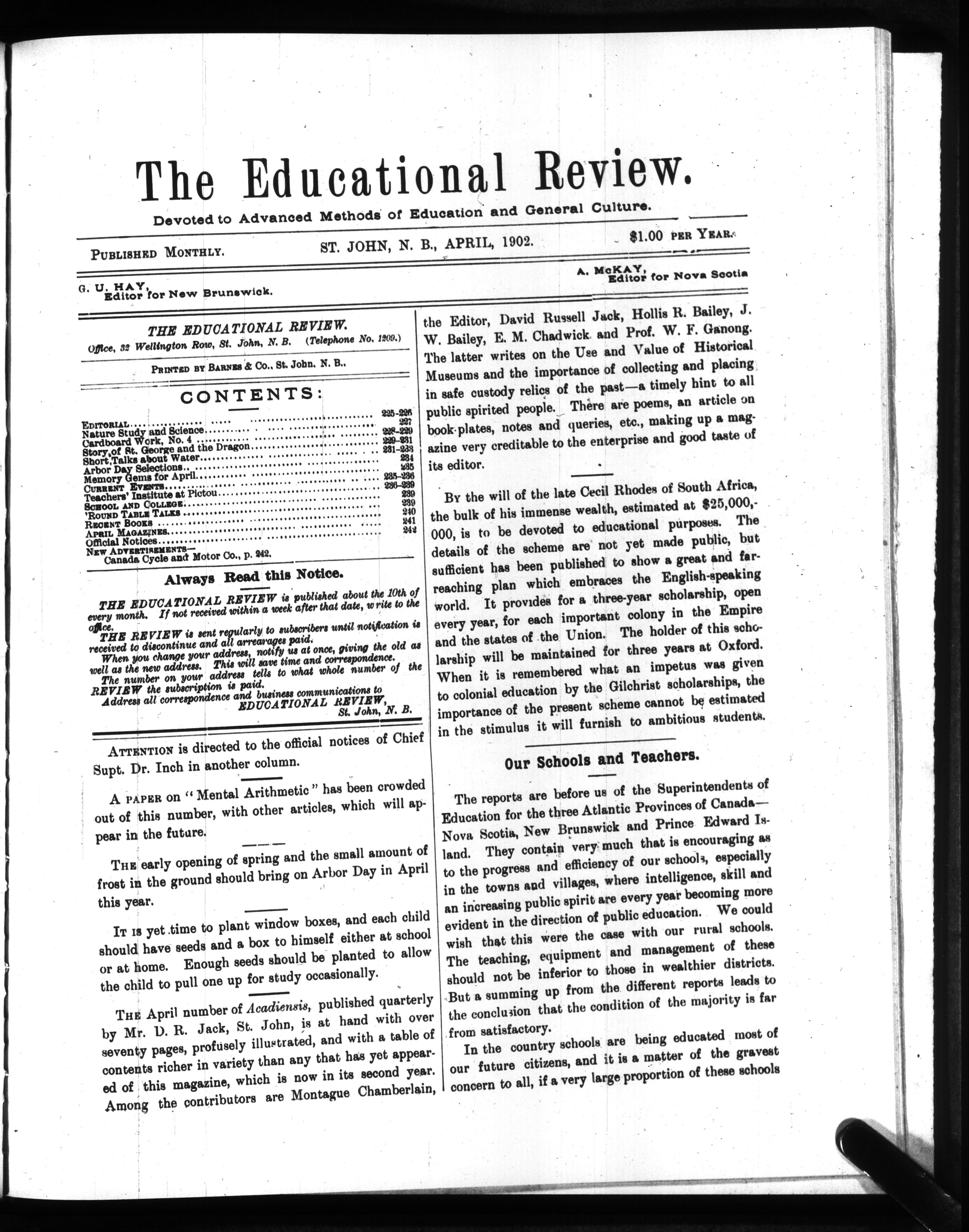 - Educational review. : Vol. XV. No. 11. (April, 1902.)