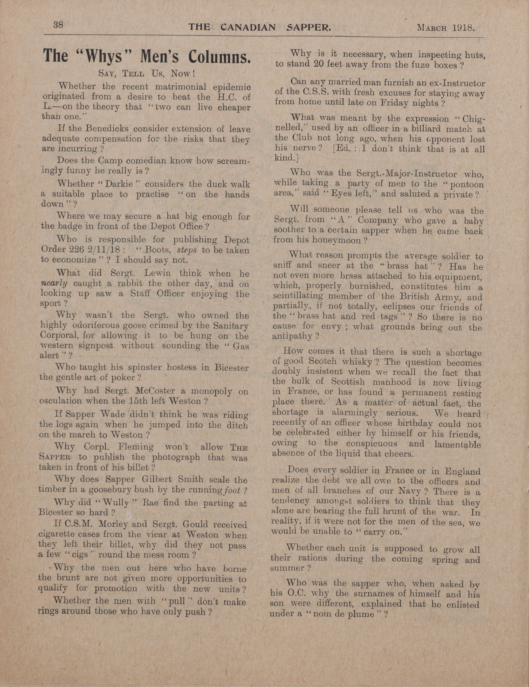 The Canadian sapper. : Vol. I No. 2 (March 1918)