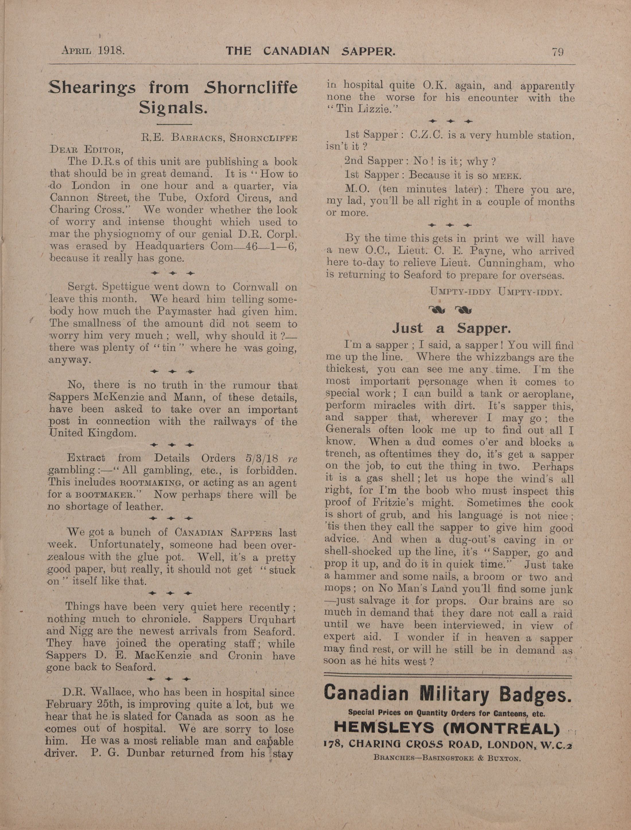 - The Canadian sapper. : Vol. I No. 3 (April 1918)