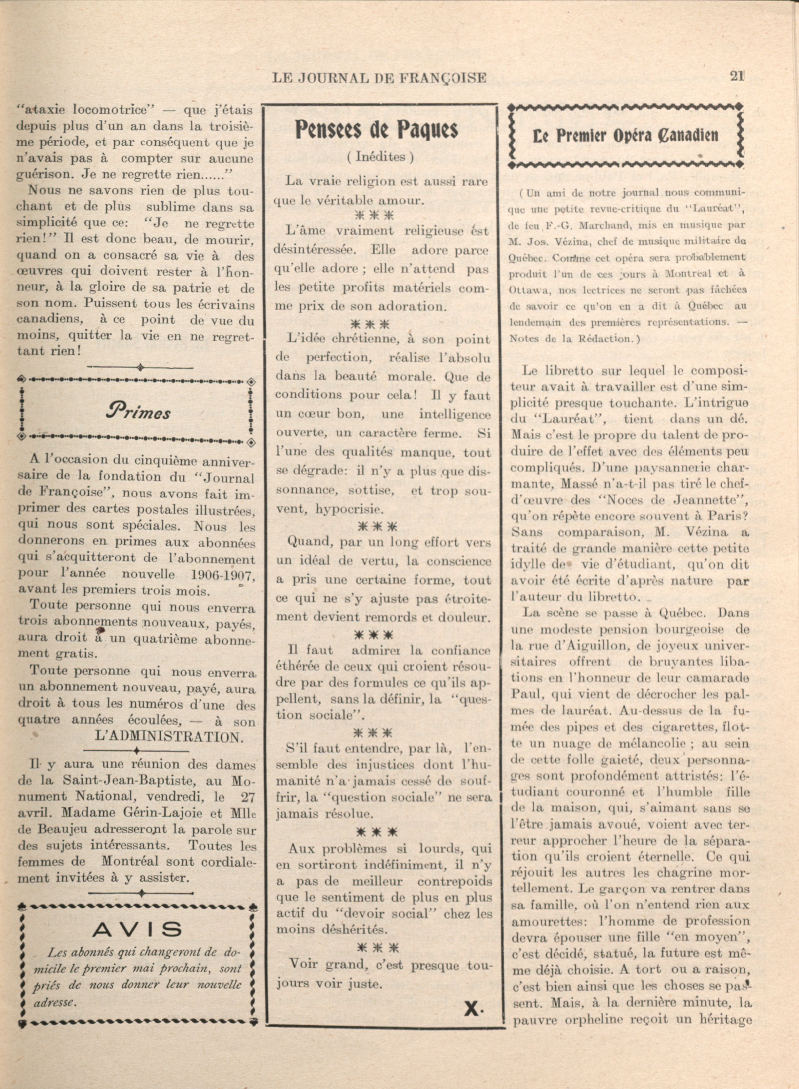 - Le Journal de Françoise. : 5ème Année No 2. (21 Avril 1906.)