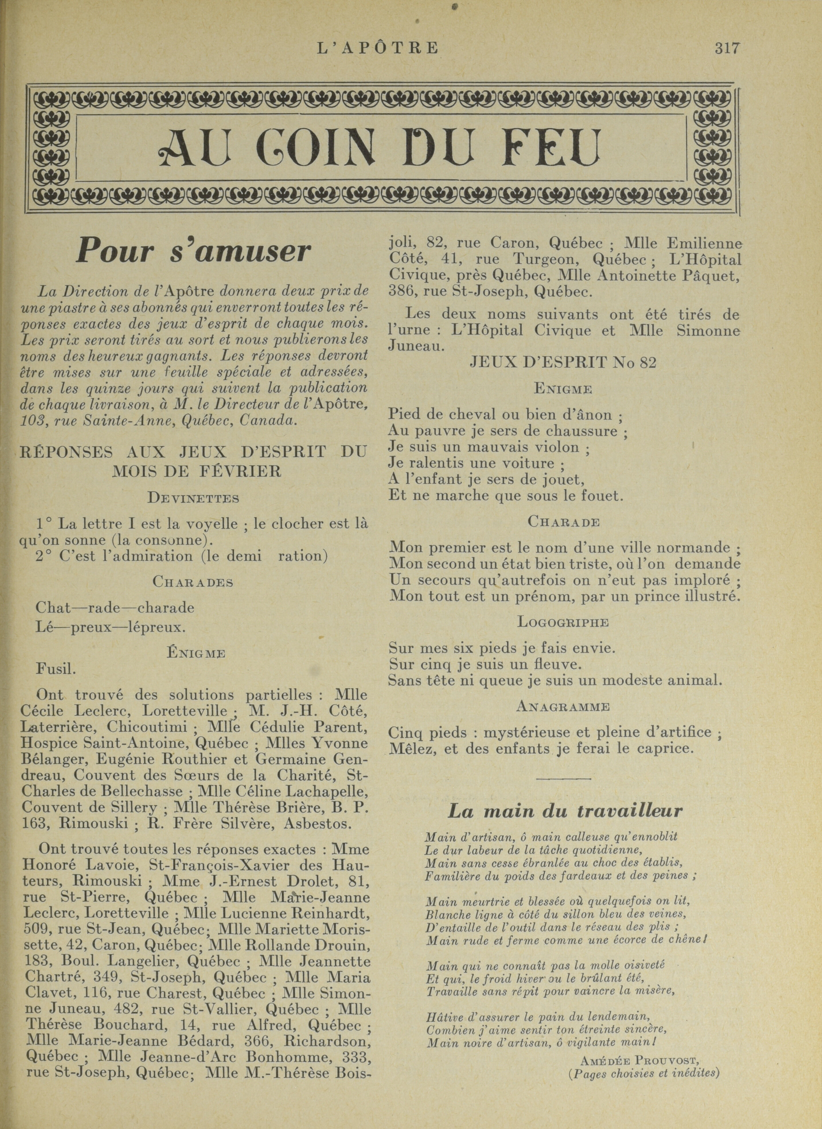 L'Apôtre. : L'Apôtre : Volume VII, No 7 (mars 1926)