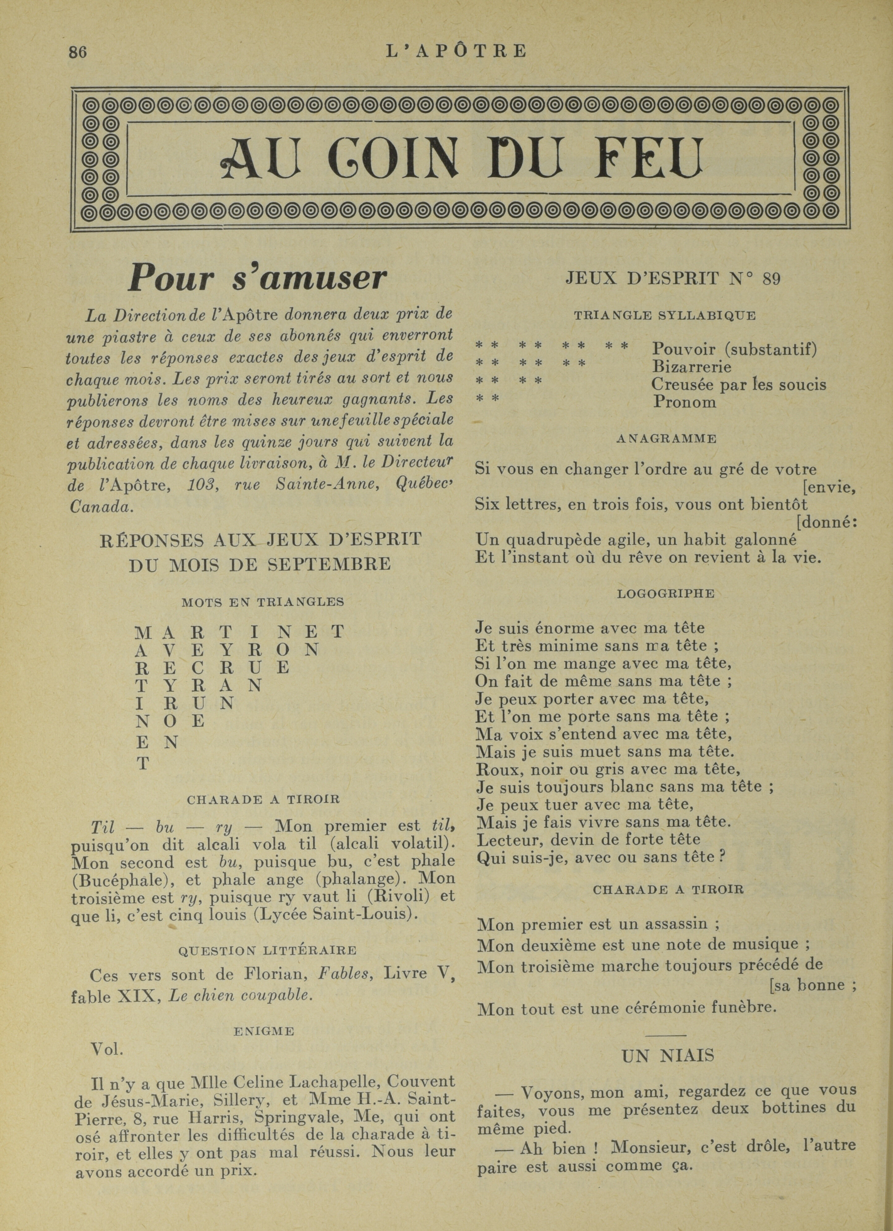 L'Apôtre. : L'Apôtre : Volume VIII, No 2 (octobre 1926)