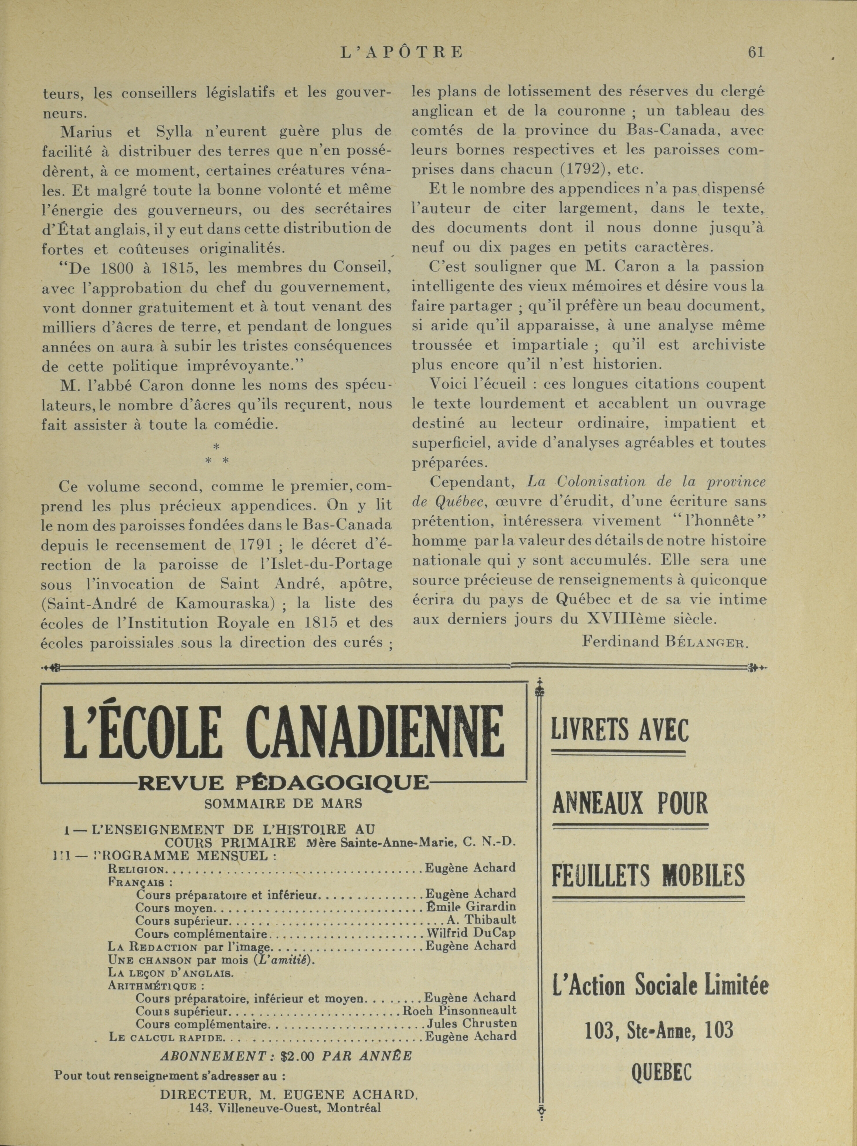 L'Apôtre. : L'Apôtre : Volume IX, No 2 (octobre 1927)
