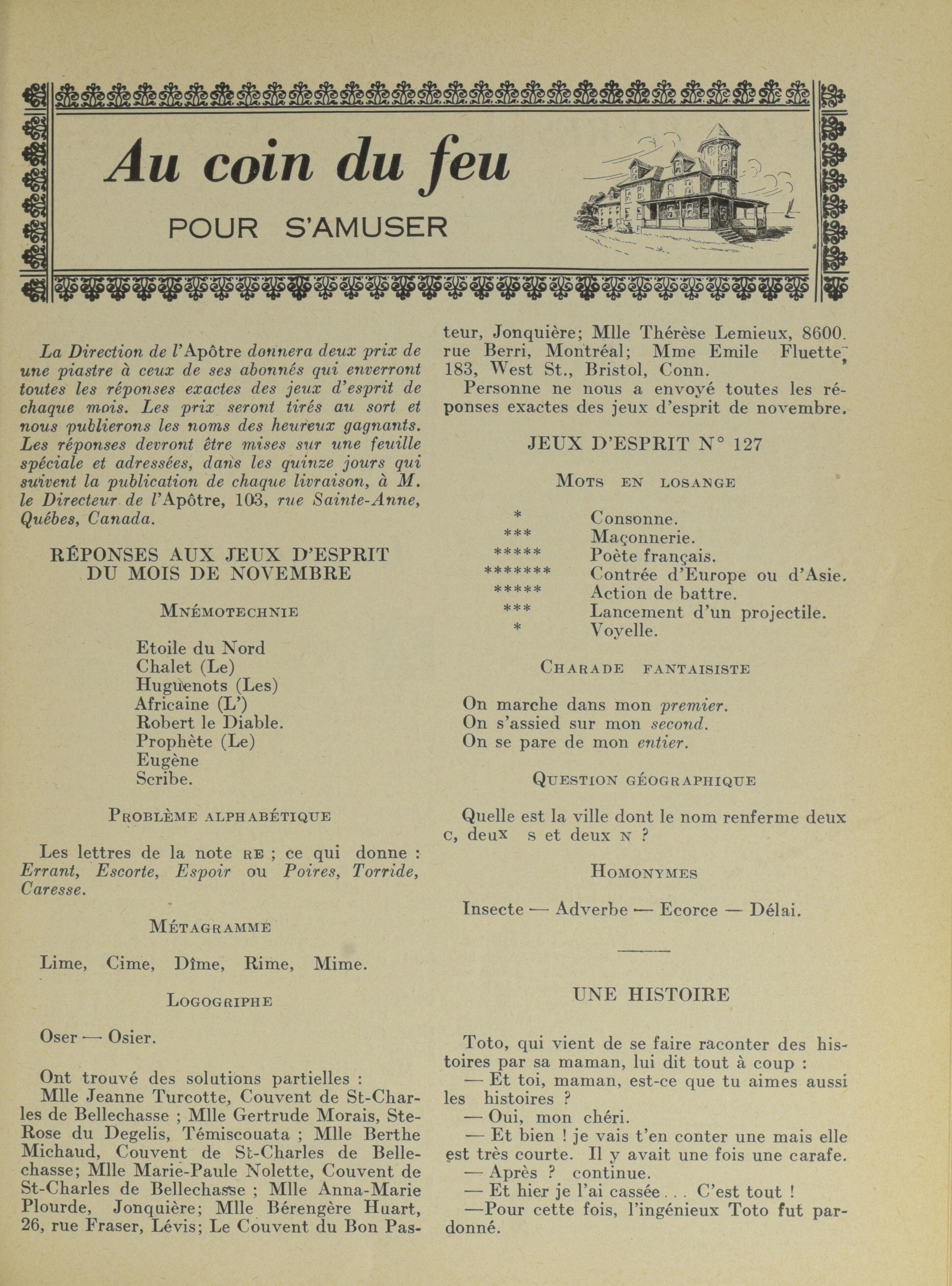 L'Apôtre. : L'Apôtre : Volume XI, No 4 (décembre 1929)