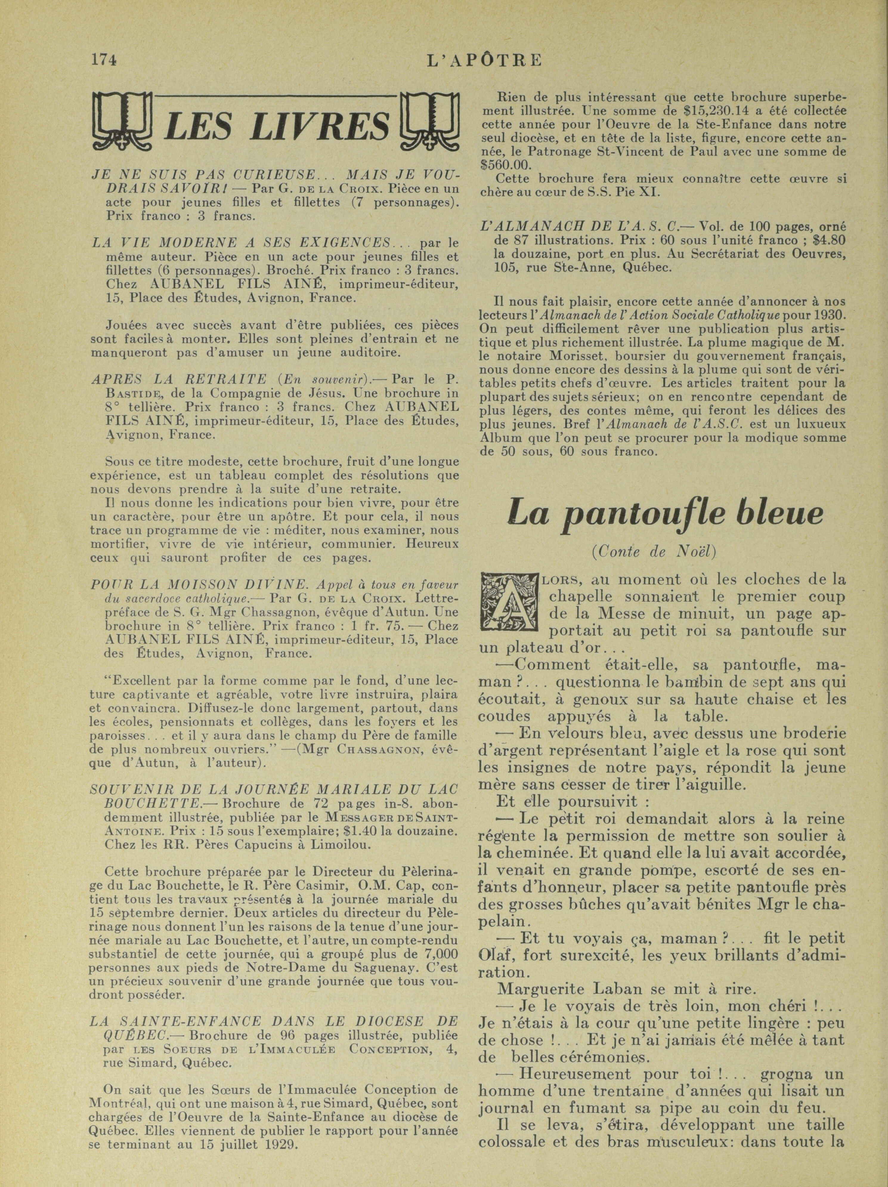 L'Apôtre. : L'Apôtre : Volume XI, No 4 (décembre 1929)