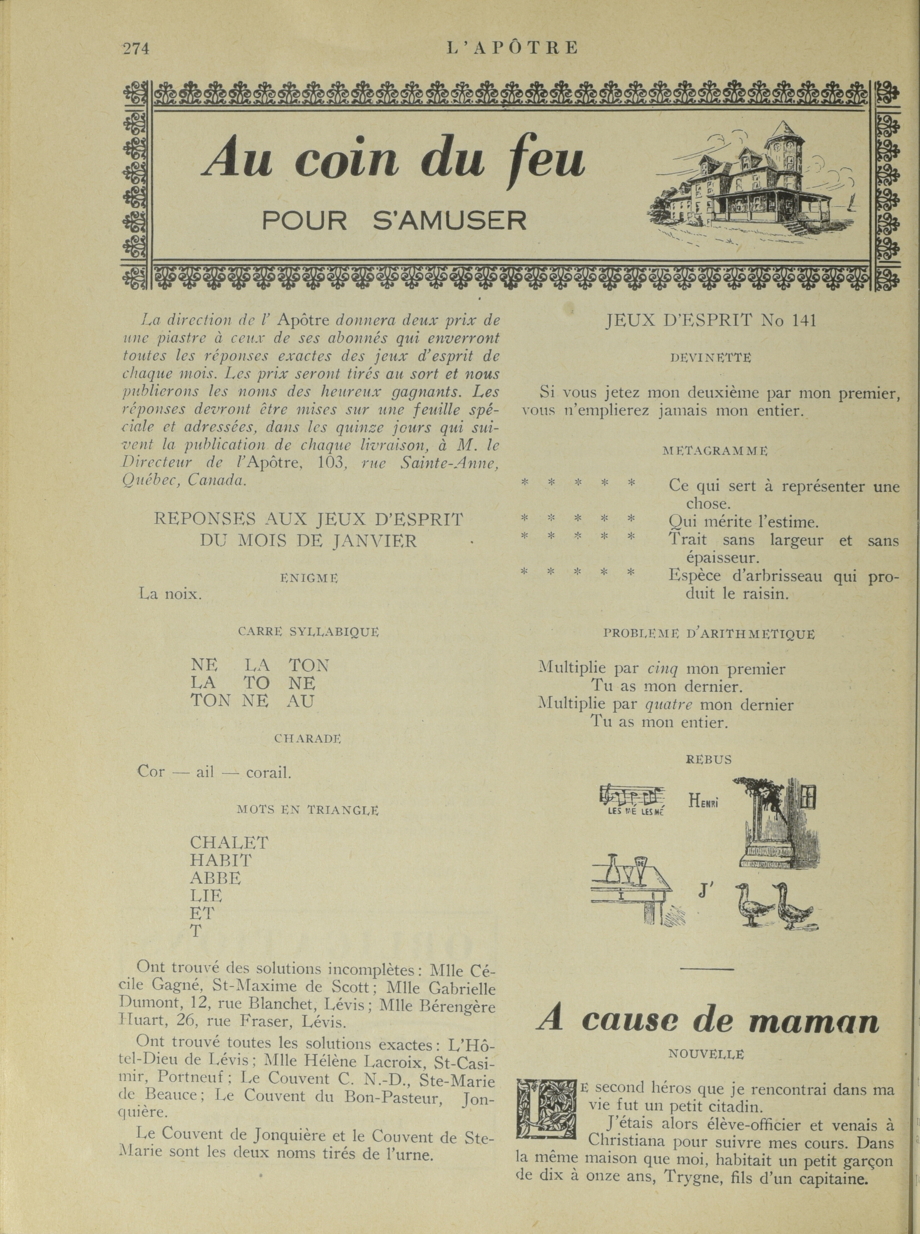 L'Apôtre. : L'Apôtre : Volume XII, No 6 (février 1931)
