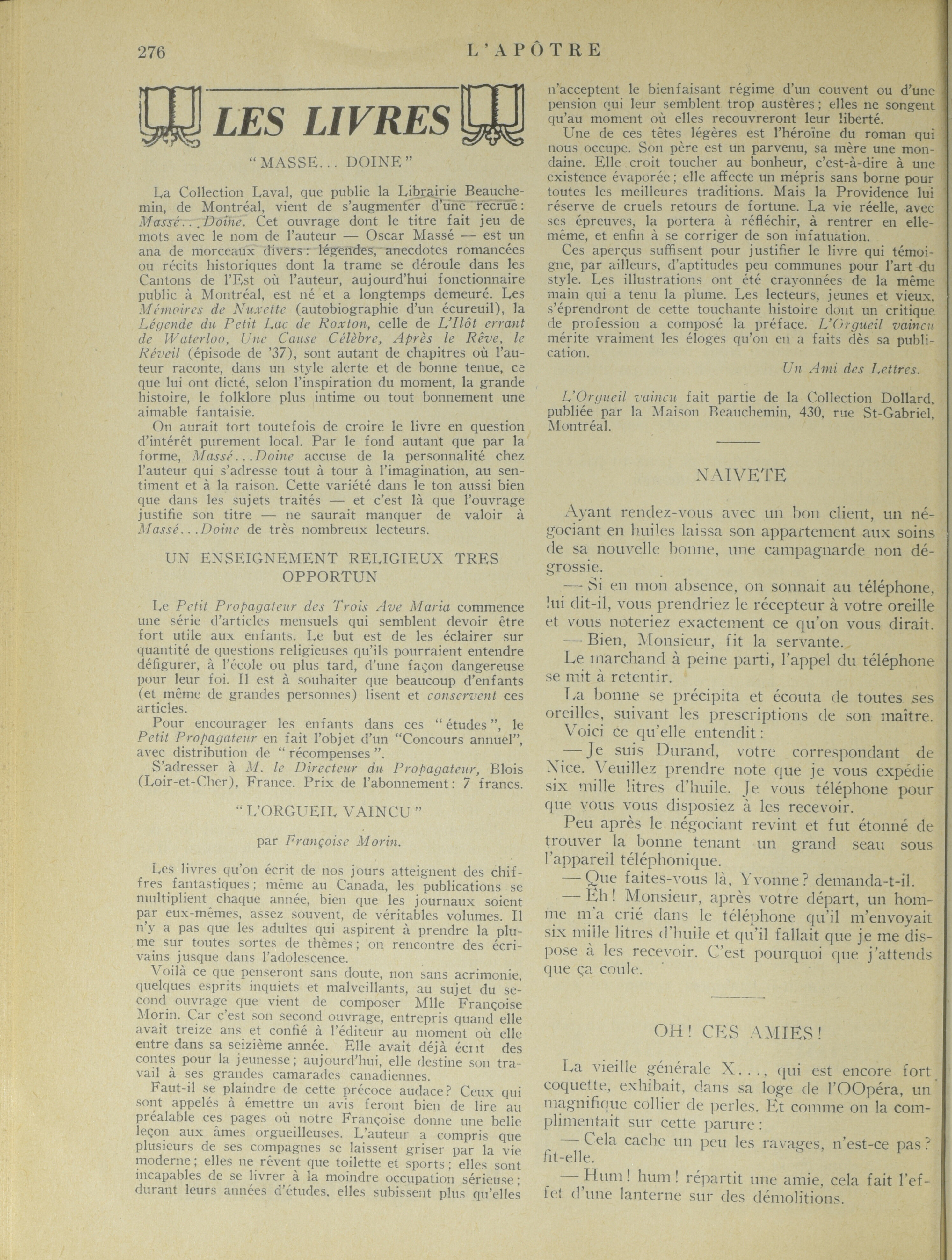 L'Apôtre. : L'Apôtre : Volume XII, No 6 (février 1931)