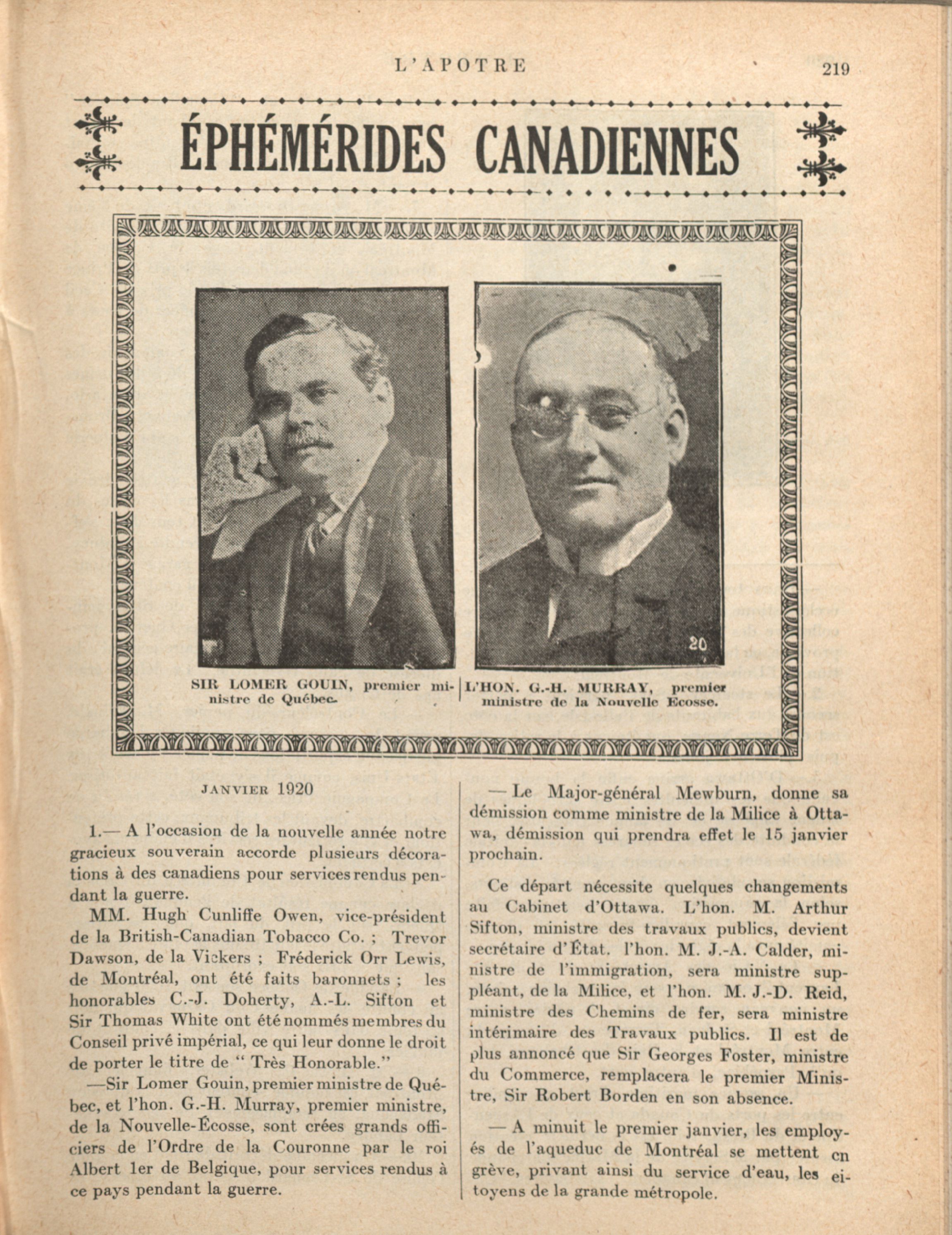 L'Apôtre. : L'Apôtre : Volume 1 No. 6 (15 février 1920)