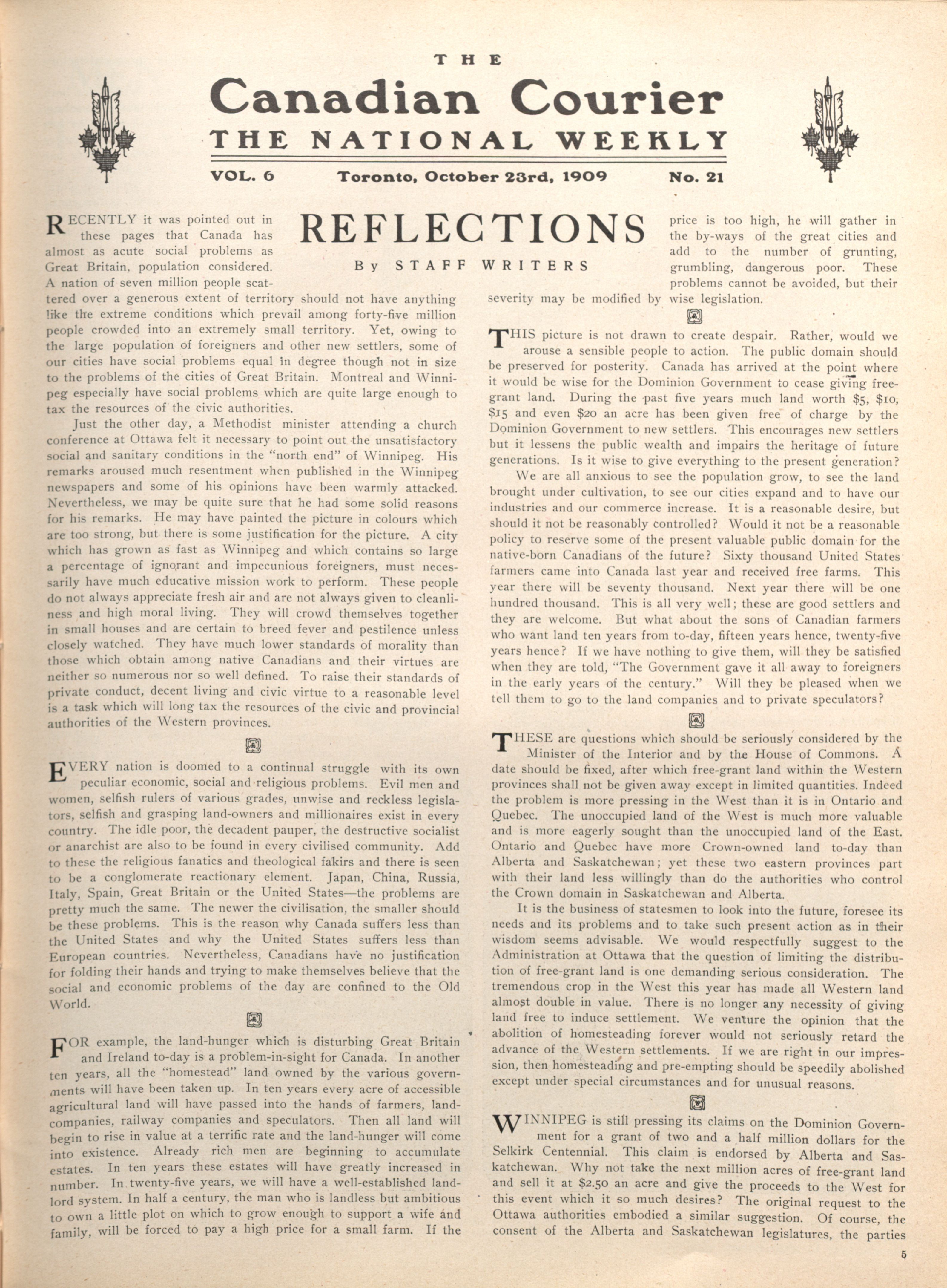The Canadian courier. : Vol. VI, No. 21 (October 23rd, 1909)