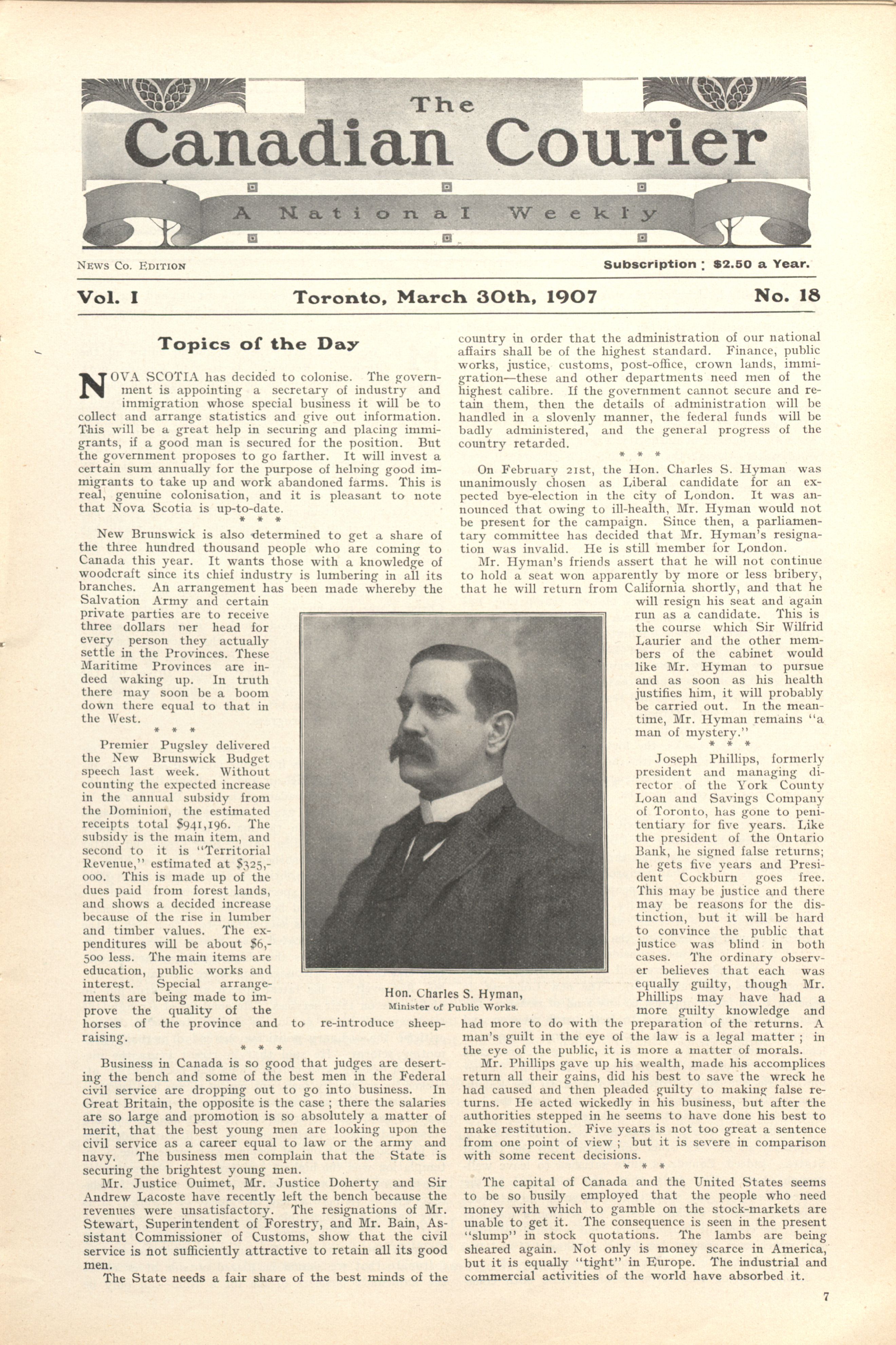The Canadian courier. : Vol. I No. 18 (March 30th, 1907)