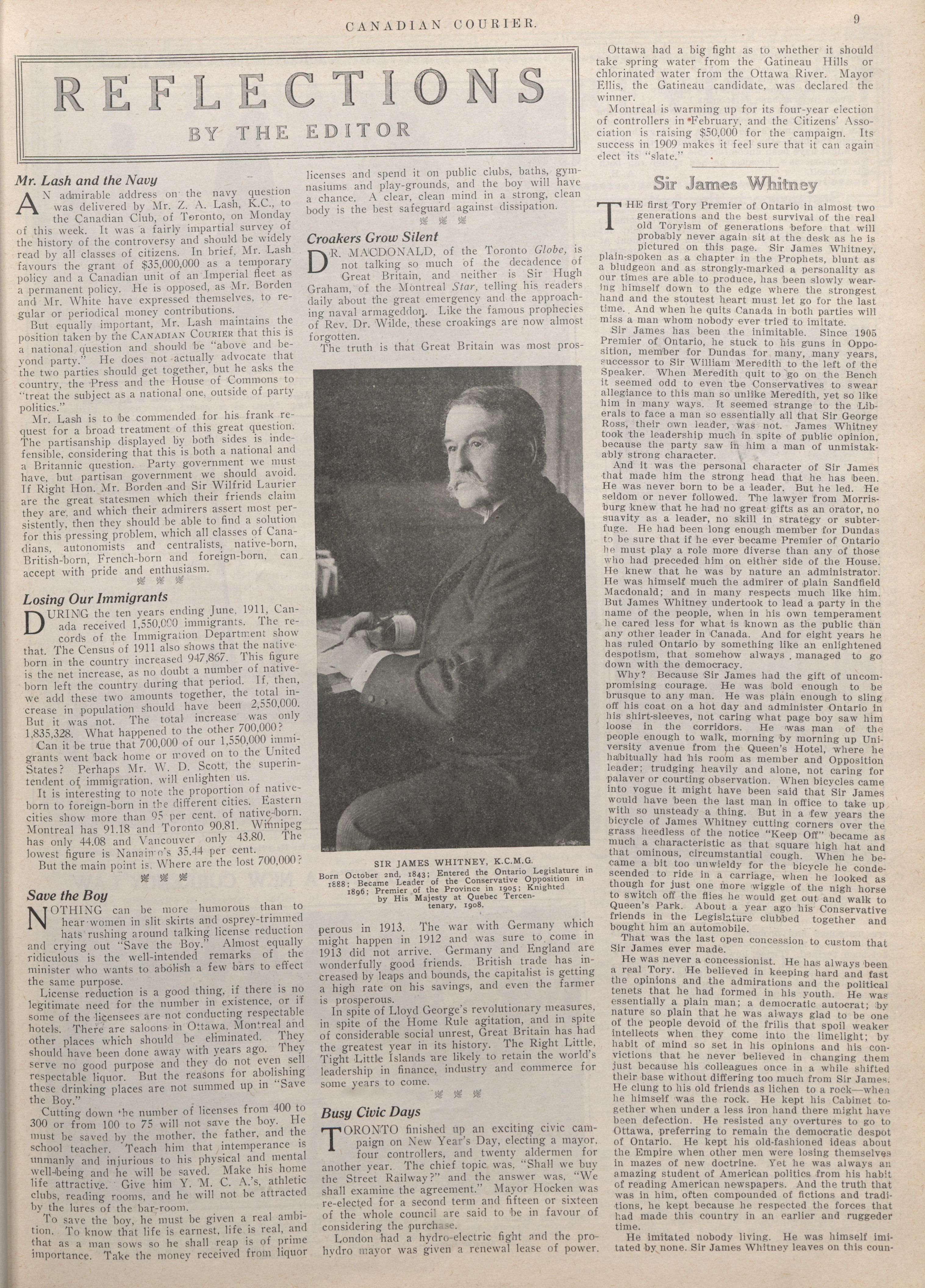 The Canadian courier. : Vol. XV. No. 6 (January 10th, 1914)