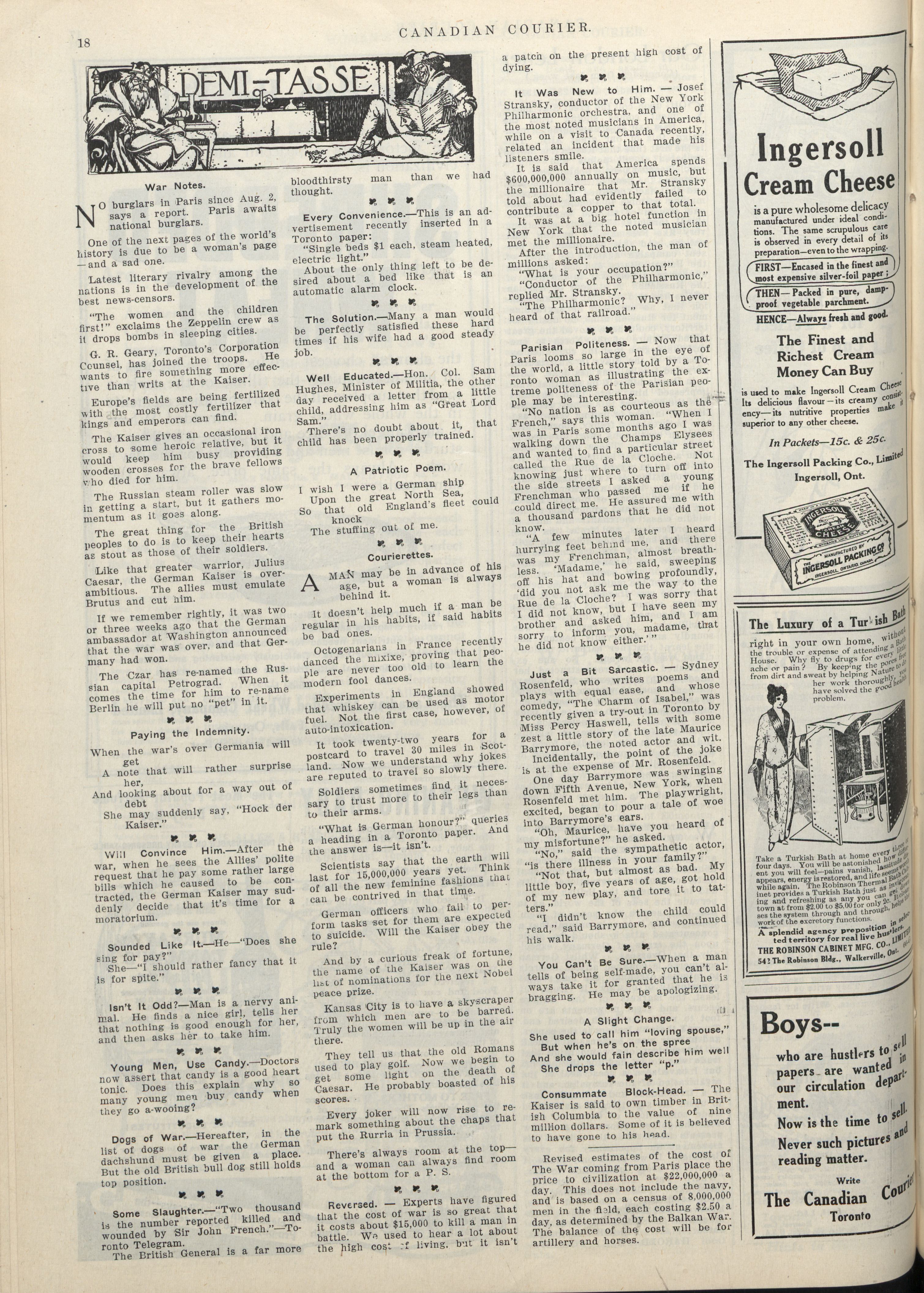 The Canadian courier. : Vol. XVI. No. 16 (September 19th, 1914)