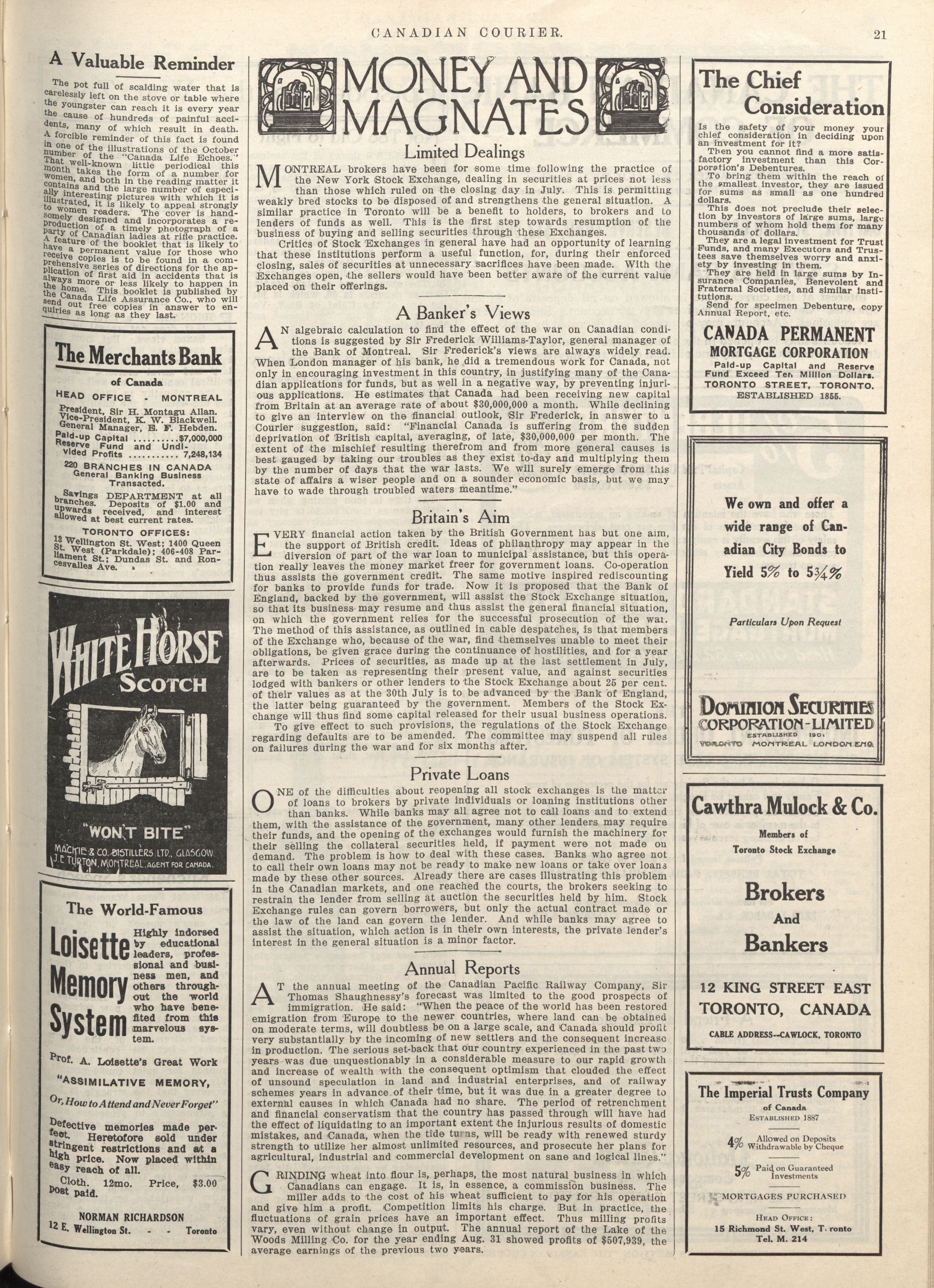The Canadian courier. : Vol. XVI. No. 20 (October 17th, 1914)
