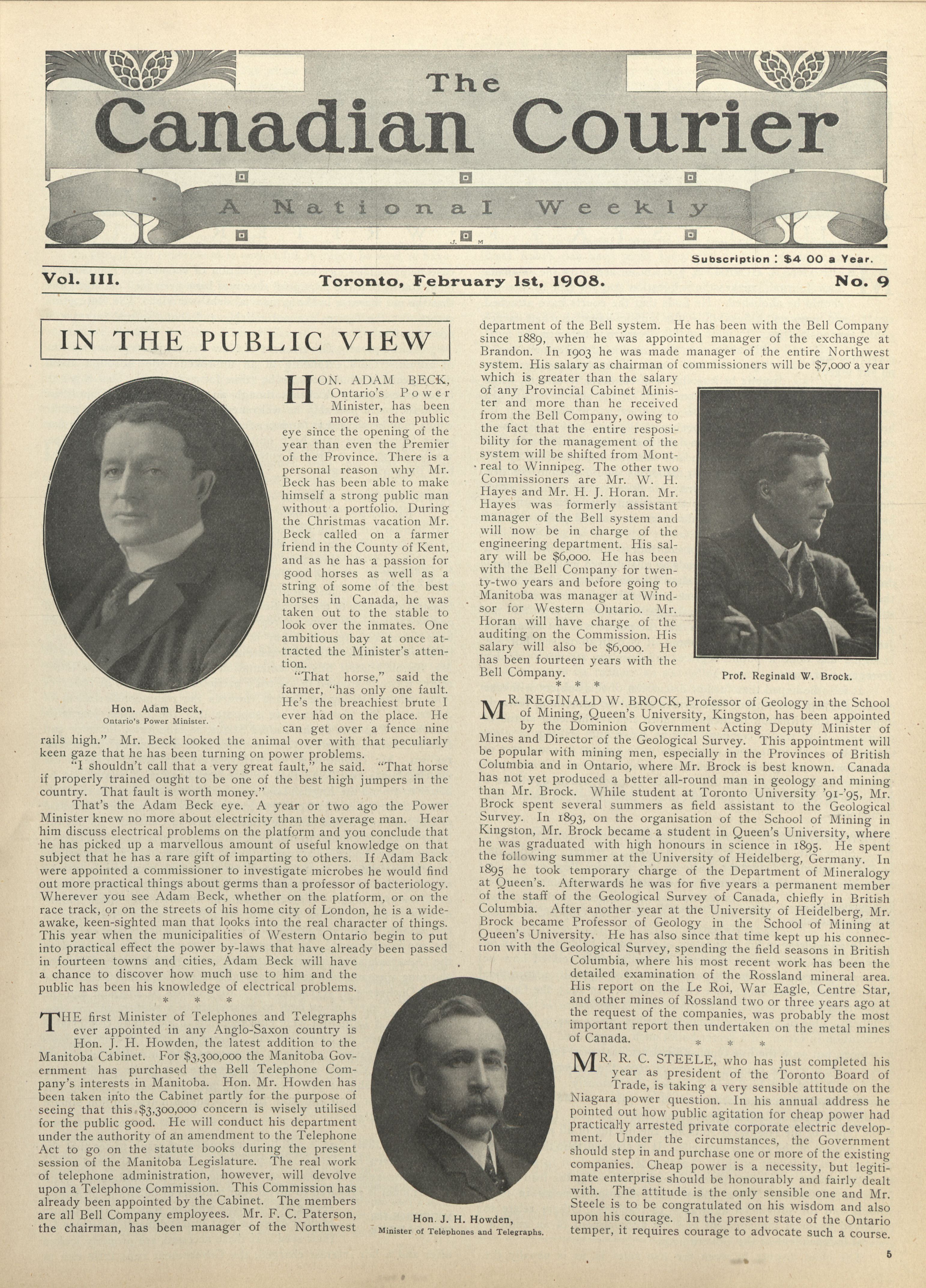 The Canadian courier. : Vol. III. No. 9 (February 1st, 1908)