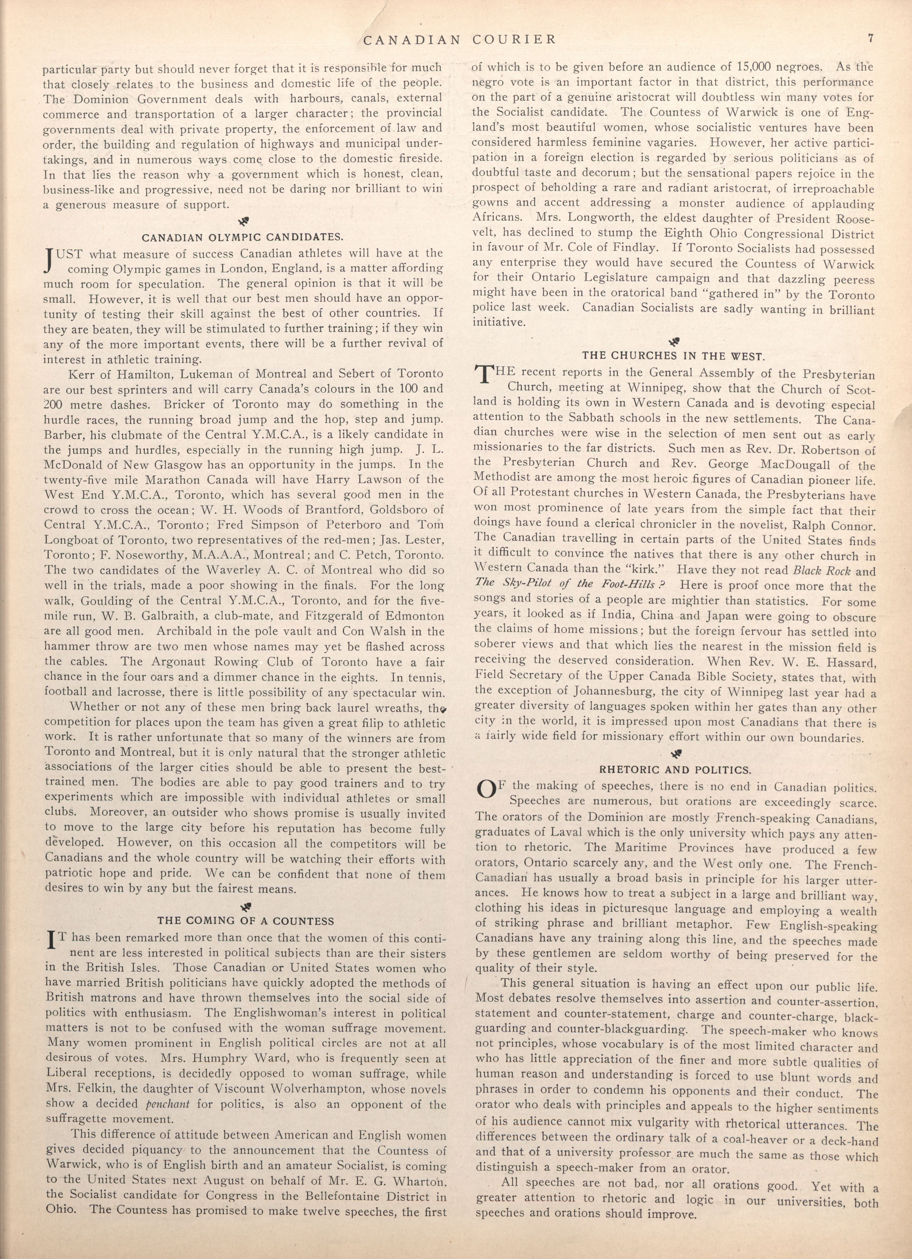 The Canadian courier. : Vol. IV, No. 2 (June 13th, 1908)