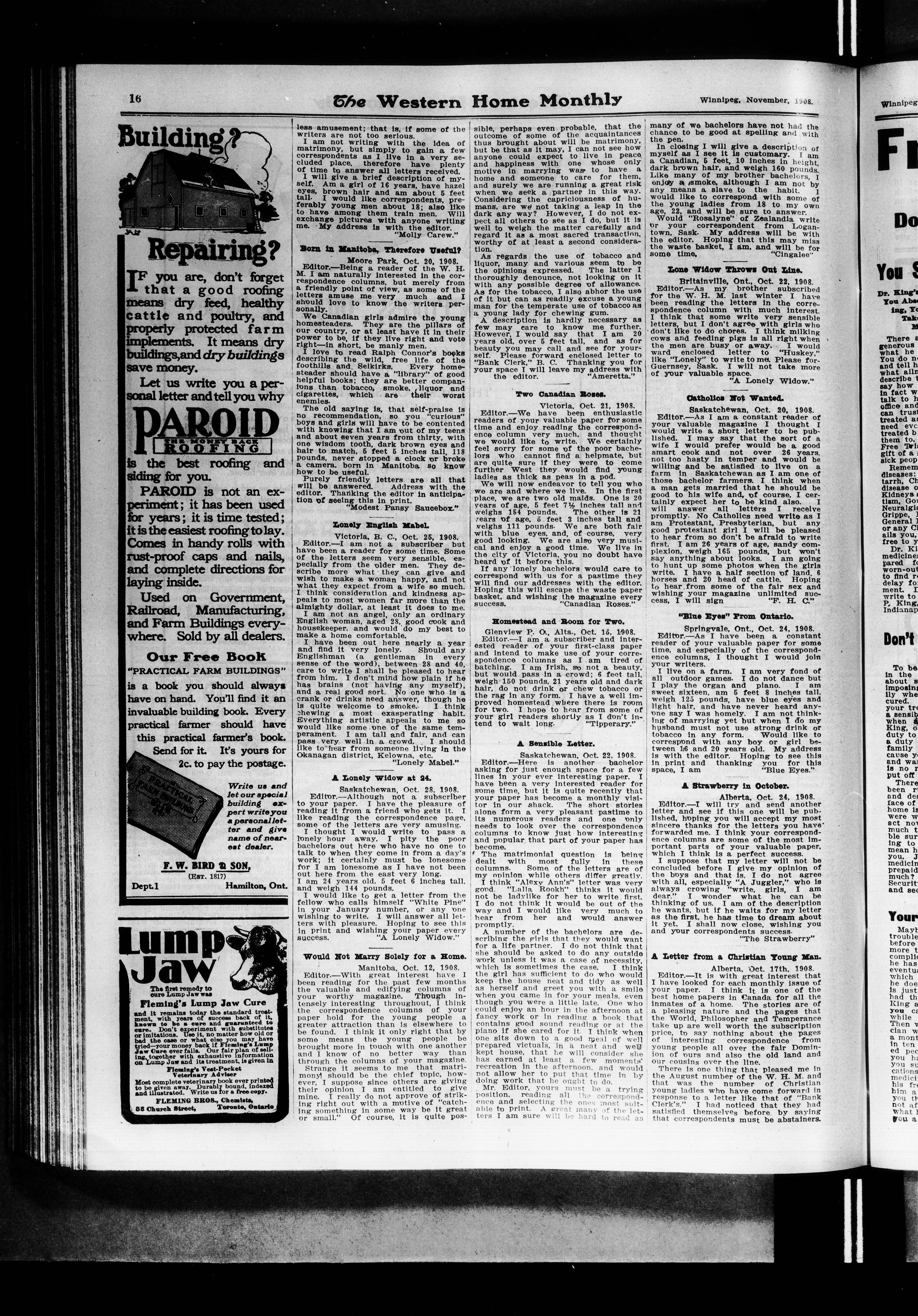 The Western home monthly. : Vol. IX. No. 11. (November, 1908.)