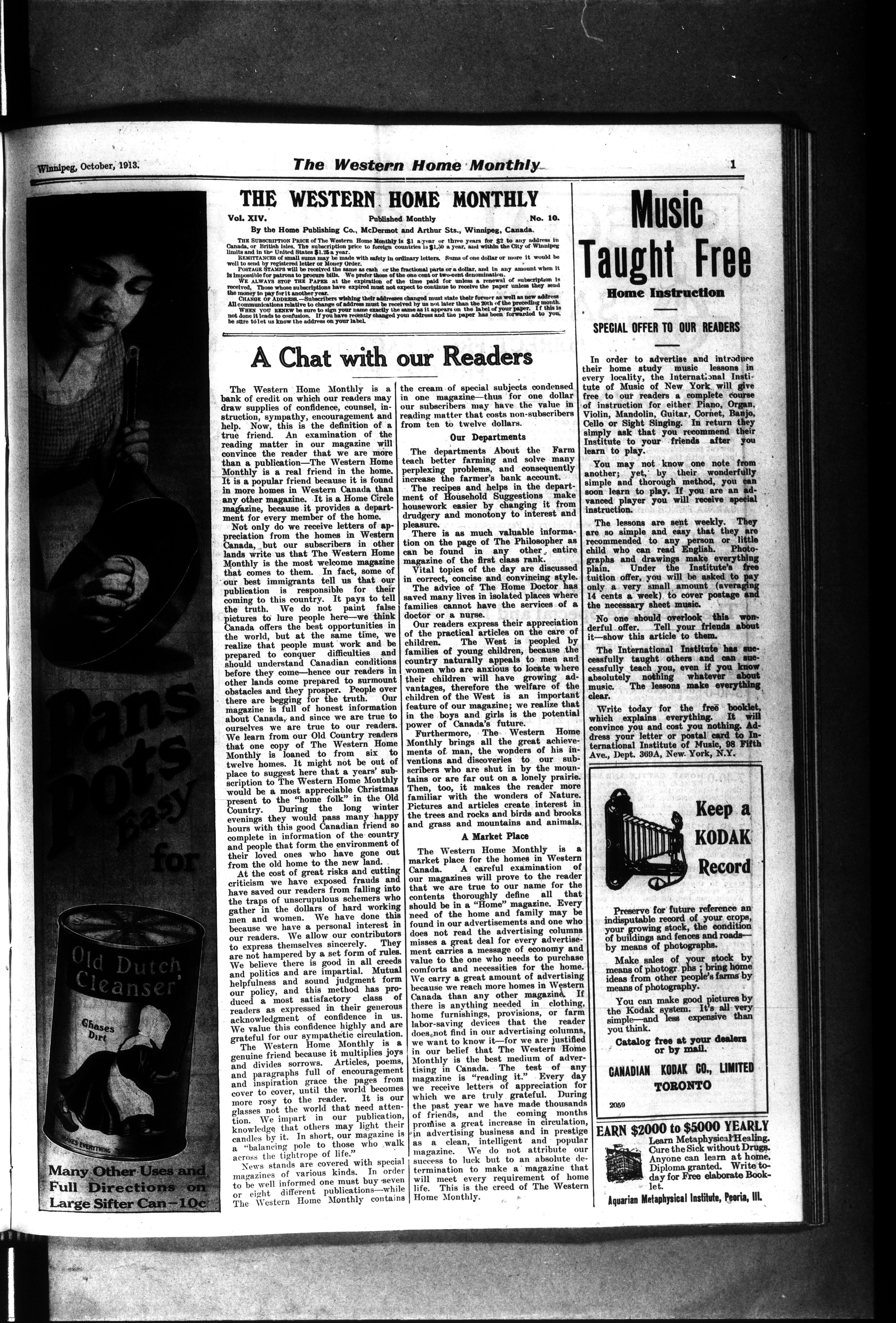 - The Western home monthly. : Vol. XIV. No. 10. (October, 1913)