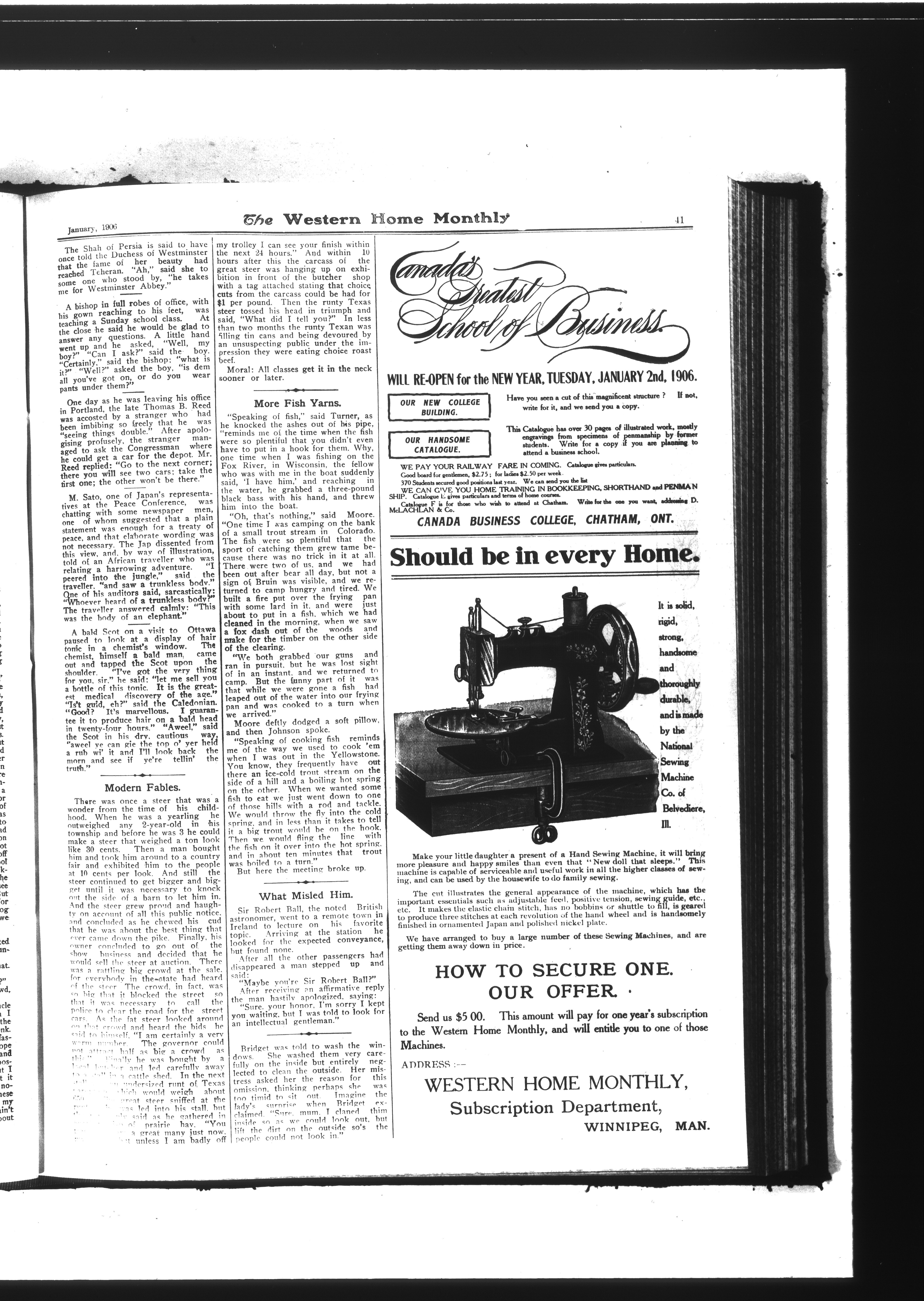 - The Western home monthly. : Vol. VI. No. 13. [i.e. Vol. VII. No. 1] (January, 1906.)