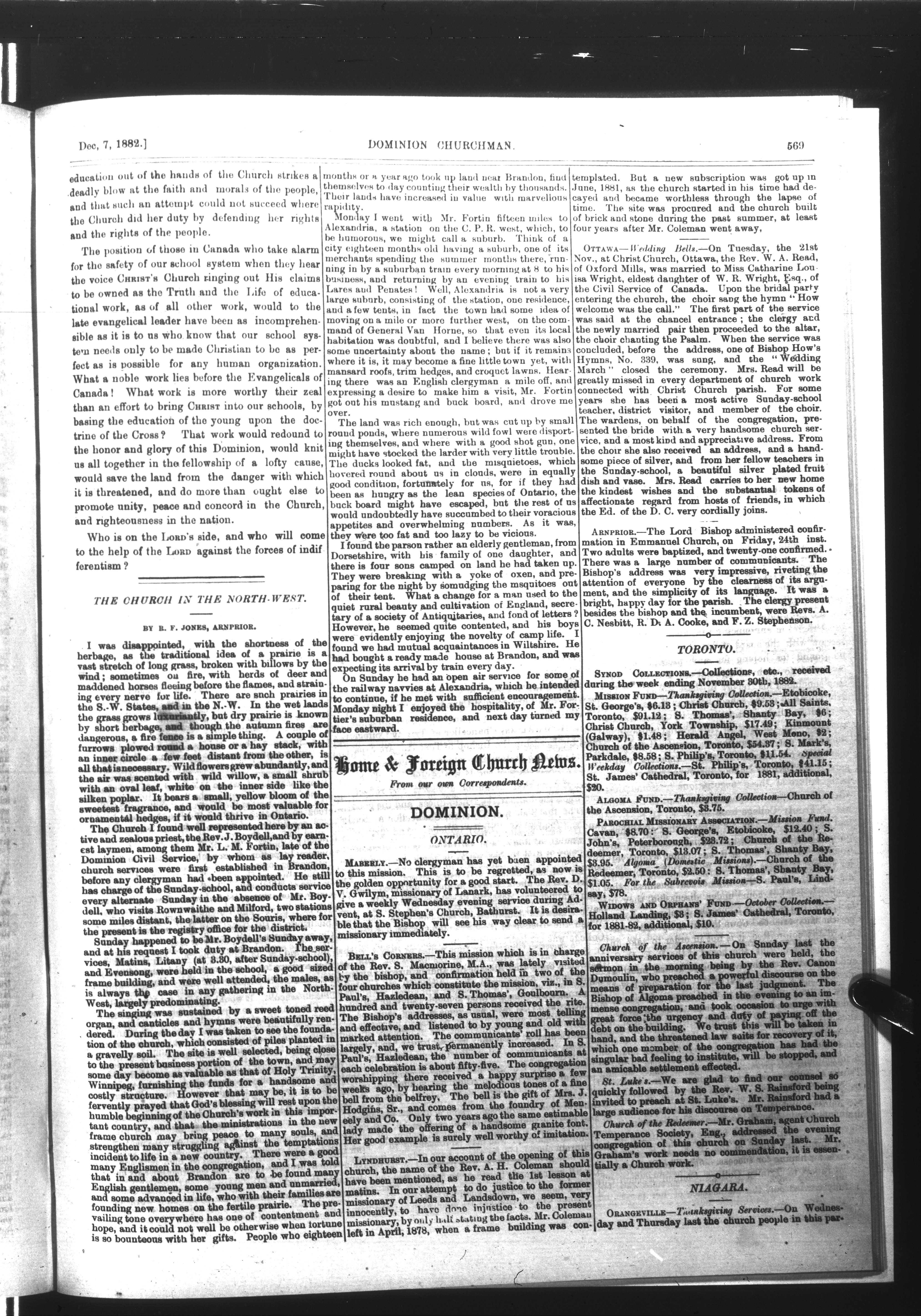 Dominion Churchman : Vol. 8. No. 49. (December 7, 1882.)