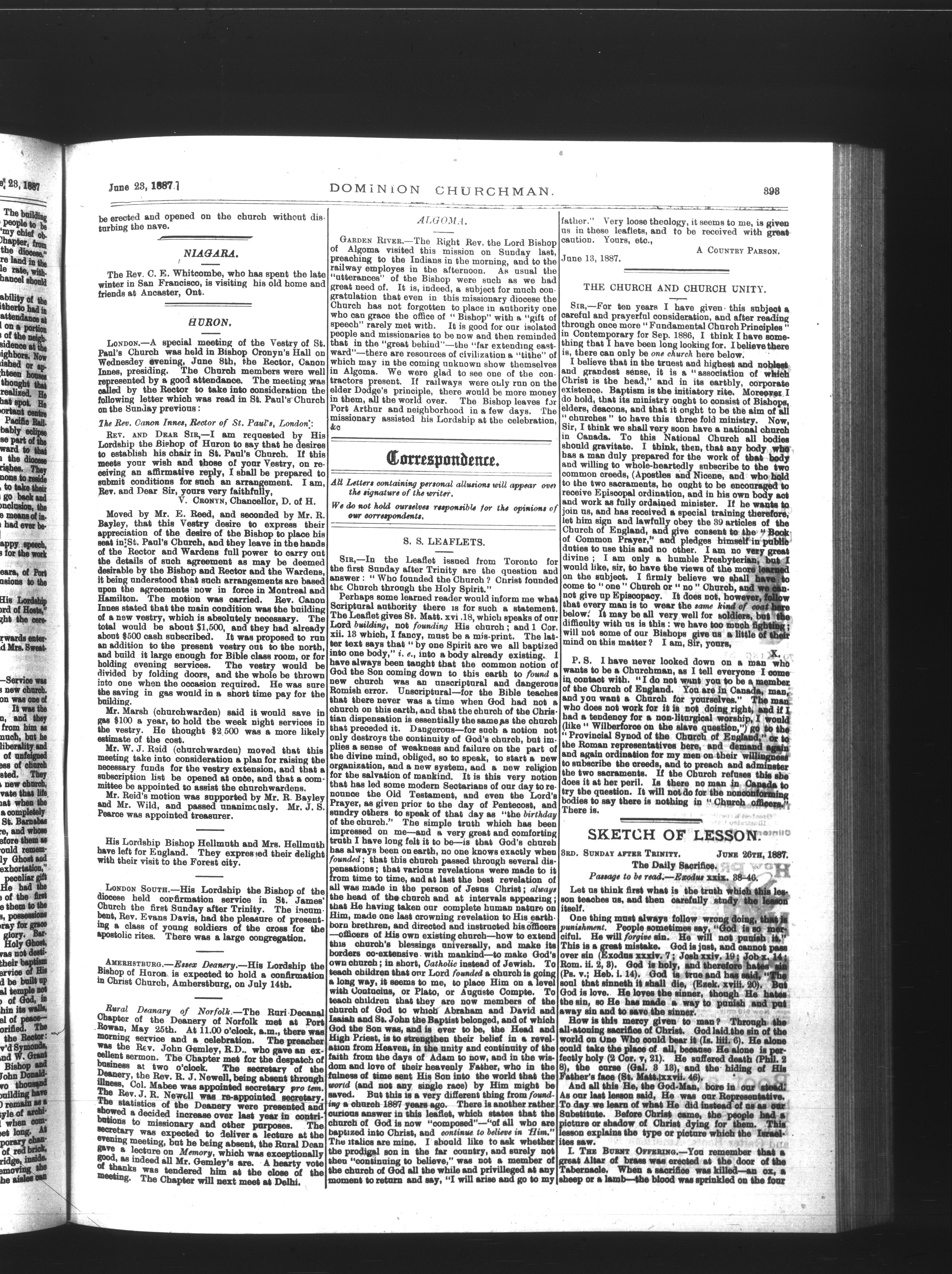 Dominion Churchman : Vol. 13. No. 25. (June 23, 1887.)