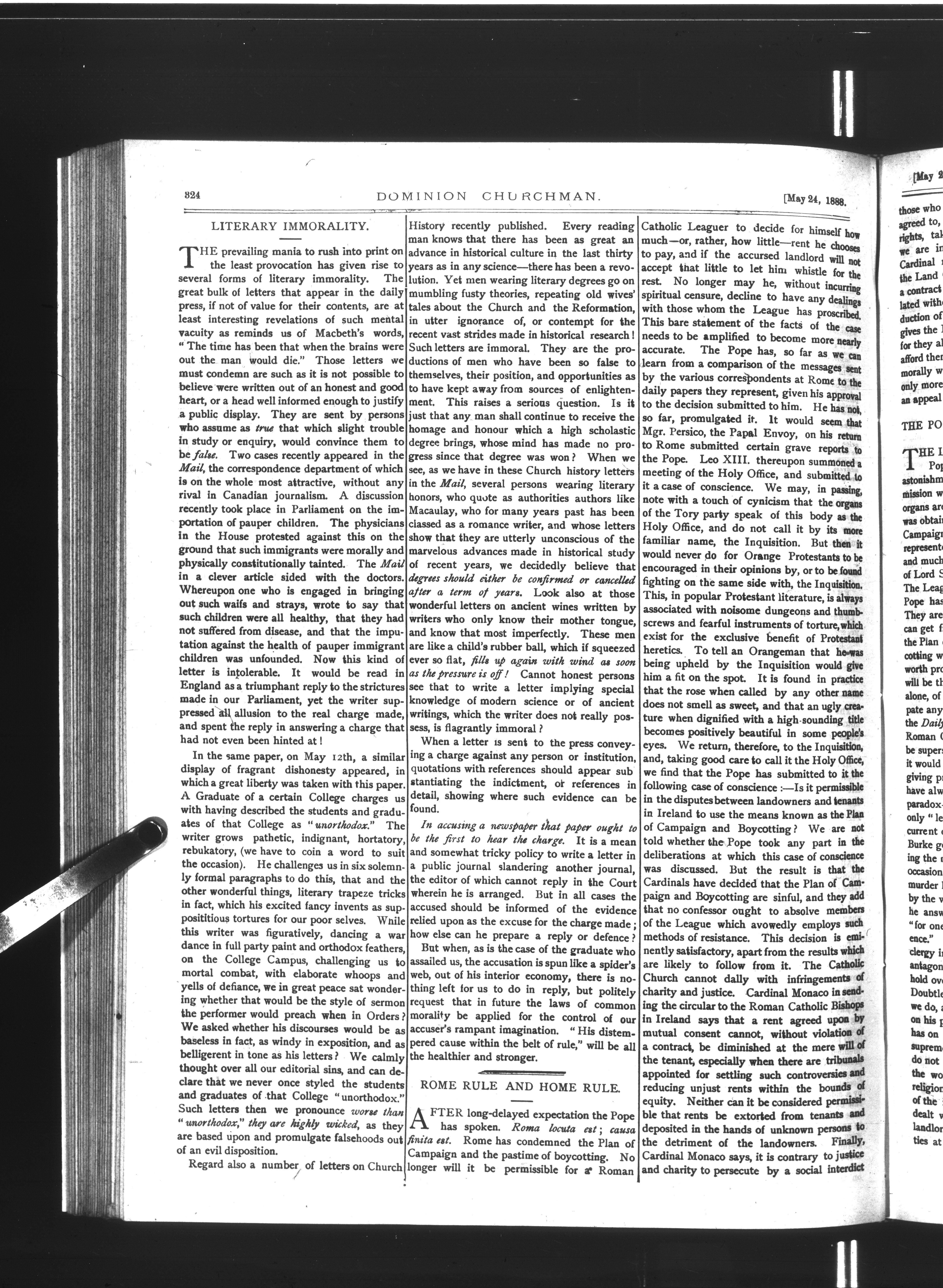 Dominion Churchman : Vol. 14. No. 21. (May 24, 1888.)
