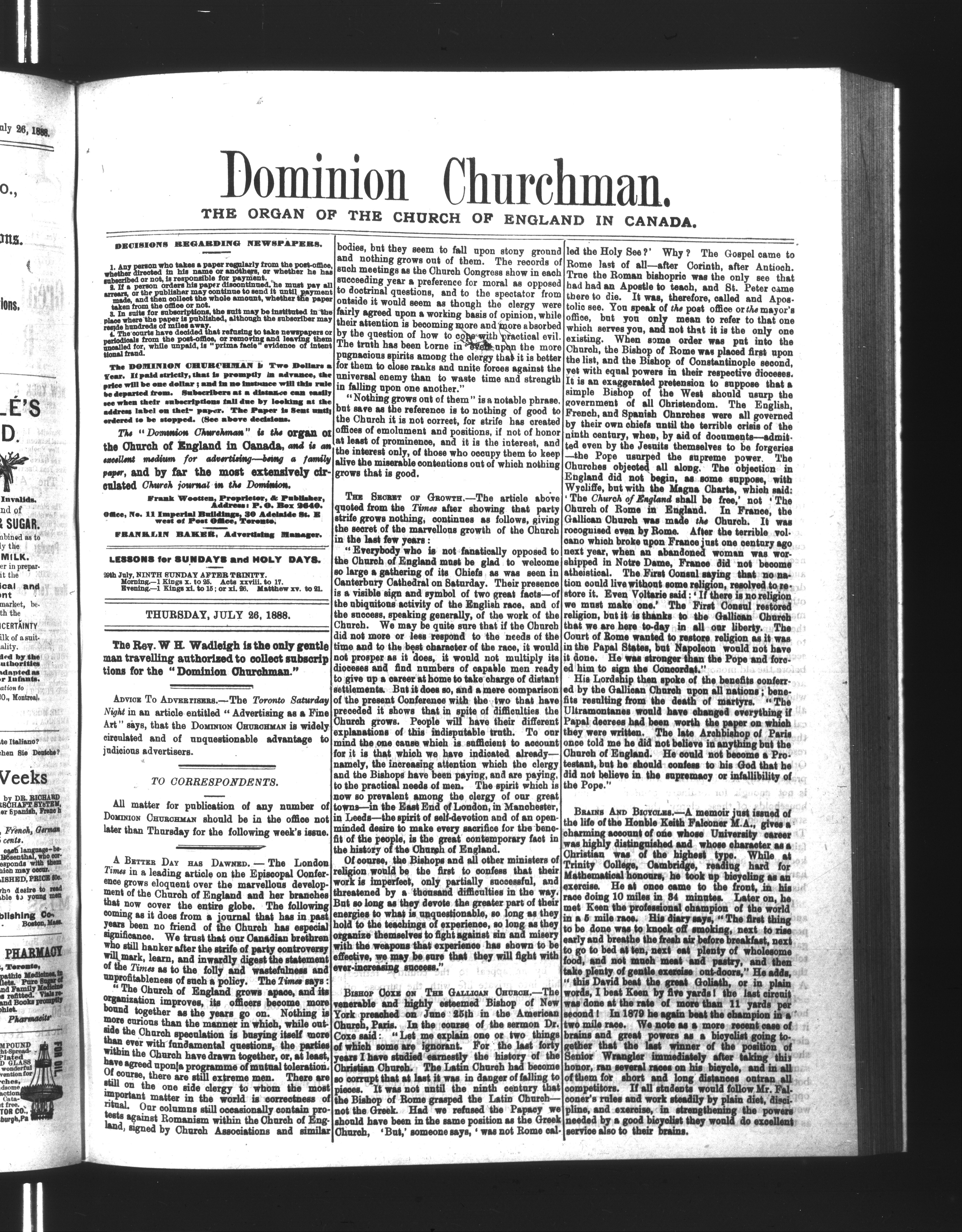 Dominion Churchman : Vol. 14. No. 30. (July 26, 1888.)