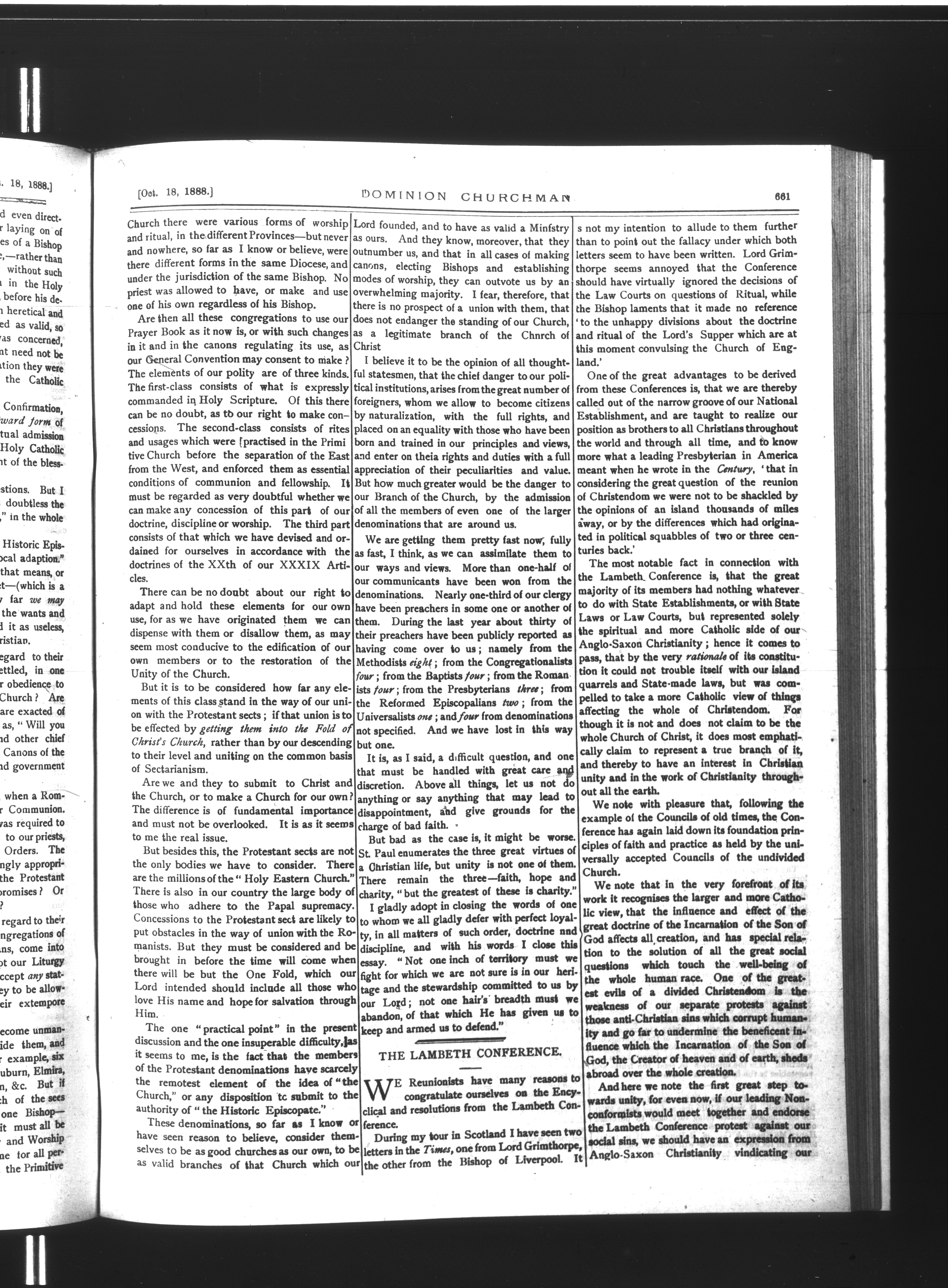 Dominion Churchman : Vol. 14. No. 42. (Oct. 18, 1888.)